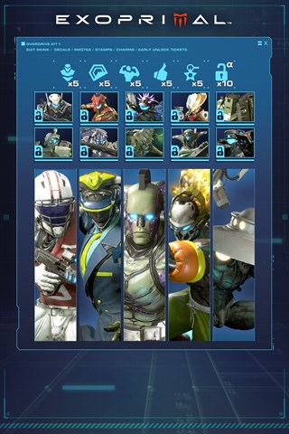 - Exosuit-Vorabfreischaltungsticket-Paket 1 (beinhaltet Vorabfreischaltungstickets für folgende Exosuits)