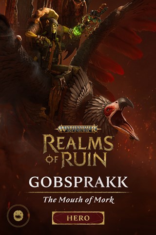 Gobsprakk, der Mund des Mork, ist der schlauste und gerissenste aller Sumpfrufa-Schamanen, der von den Orruk-Moorpirscha als der Mund des Mork verkündet wird. Gobsprakk, der einen Leich'ngeia reitet, ist die erste fliegende Einheit der Orruk-Moorpirscha. Als ein extrem mobiler Angriffsheld im späten Spiel unterstützt er seine Orruk-Kohorten zur Zerstörung seiner Feinde.
