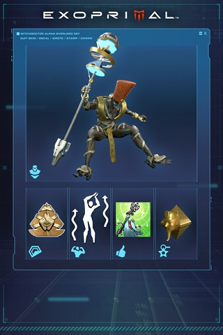 Enthält 5 kosmetische Gegenstände, darunter den "Witchdoctor Alpha"-Unterstützungs-Suit-Skin, der Verbündete mit Angriffs- und Verteidigungsstrahl schützt.
