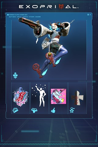 Dieses Paket enthält fünf kosmetische Objekte, darunter einen Skin für den Unterstützungs-Suit Nimbus α, der mit seinem Schrotgewehr Unterstützung aus nächster Nähe bietet.