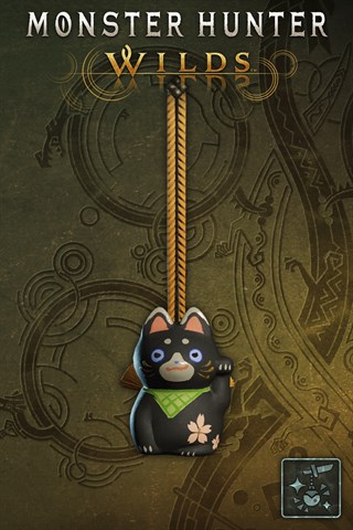 Ein Anhänger, der aussieht wie eine „Maneki-Neko“, eine winkende Katzenfigur. Sie ist schwarz und schaut verschmitzt drein.