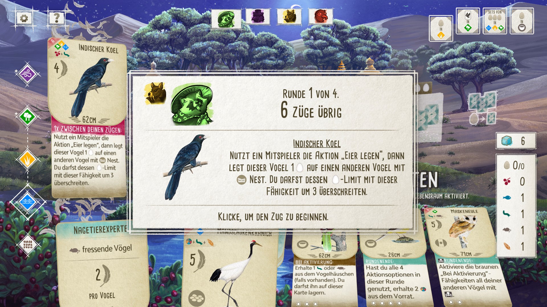 Wingspan (FLÜGELSCHLAG) Digital ist auf einem neuen Kontinent angekommen. Entdecke die geheimnisvollen, vielfältigen Vogelarten des Ostens und ihre bezaubernde Welt in „Wingspan: Asien-Erweiterung“. In dieser Erweiterung triffst du auf neue Vögel und Bonuskarten, erweiterst deine Sammlung von Hintergründen und Profilbilder um neue, von der Region inspirierte Motive und kannst einen völlig neuen Modus nutzen, der frischen Wind und noch mehr Abwechslung in deine Spiele bringt.