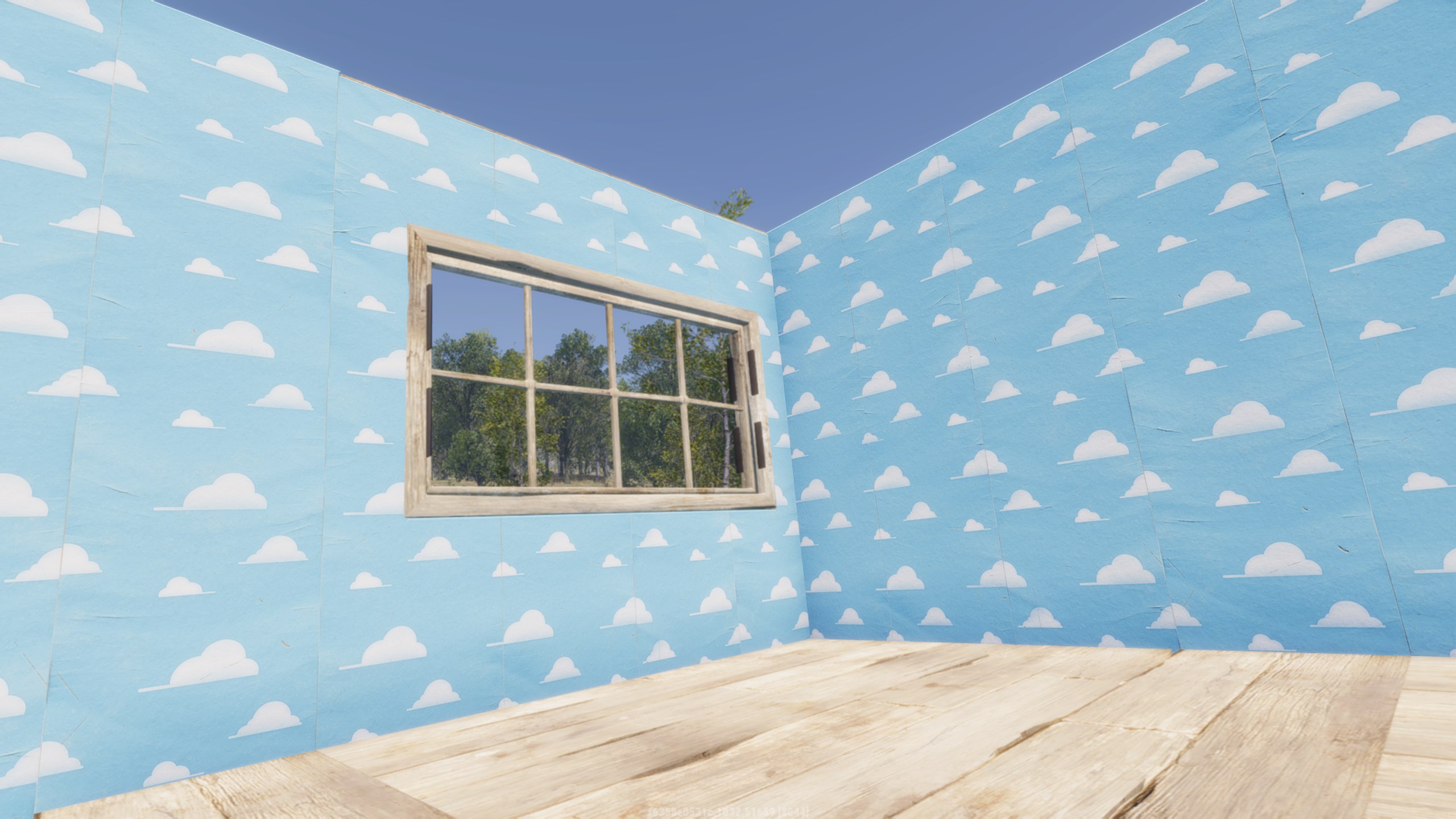 Verwandeln Sie Ihre Basis mit dieser eleganten Tapete von einer rostigen Hütte in ein gemütliches Versteck. Ein schöner Hauch von Stil – zumindest bis zum nächsten Überfall.