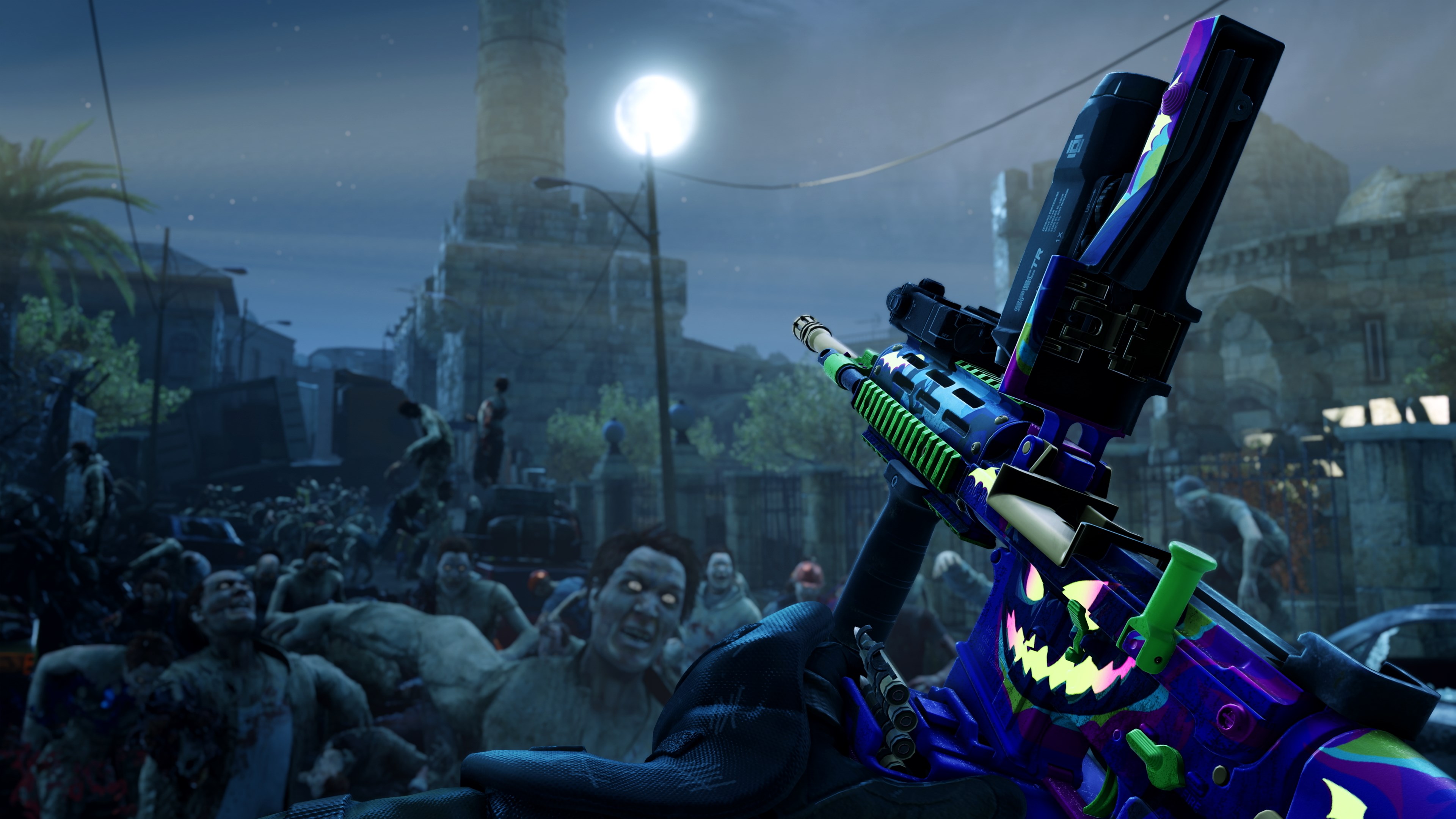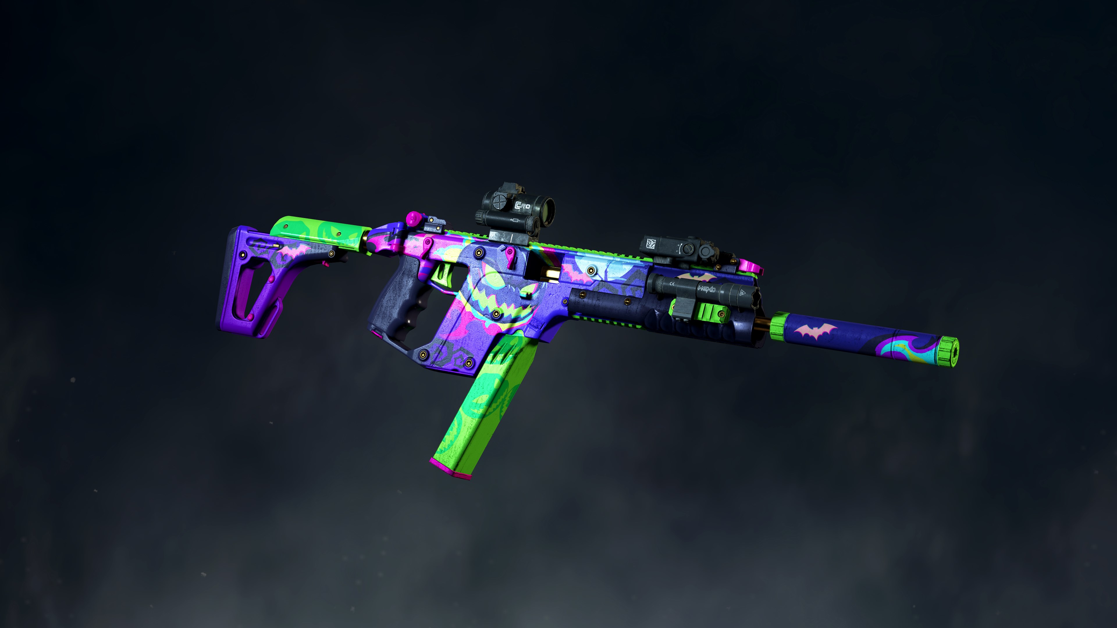 Mit dem Skinpaket "Vibrant Halloween" jagst du auch den Zombies Angst ein. Diese gruselige Sammlung von 5 Waffenskins hat unter anderem flatternde Fledermäuse und Kürbislaternen zu bieten: