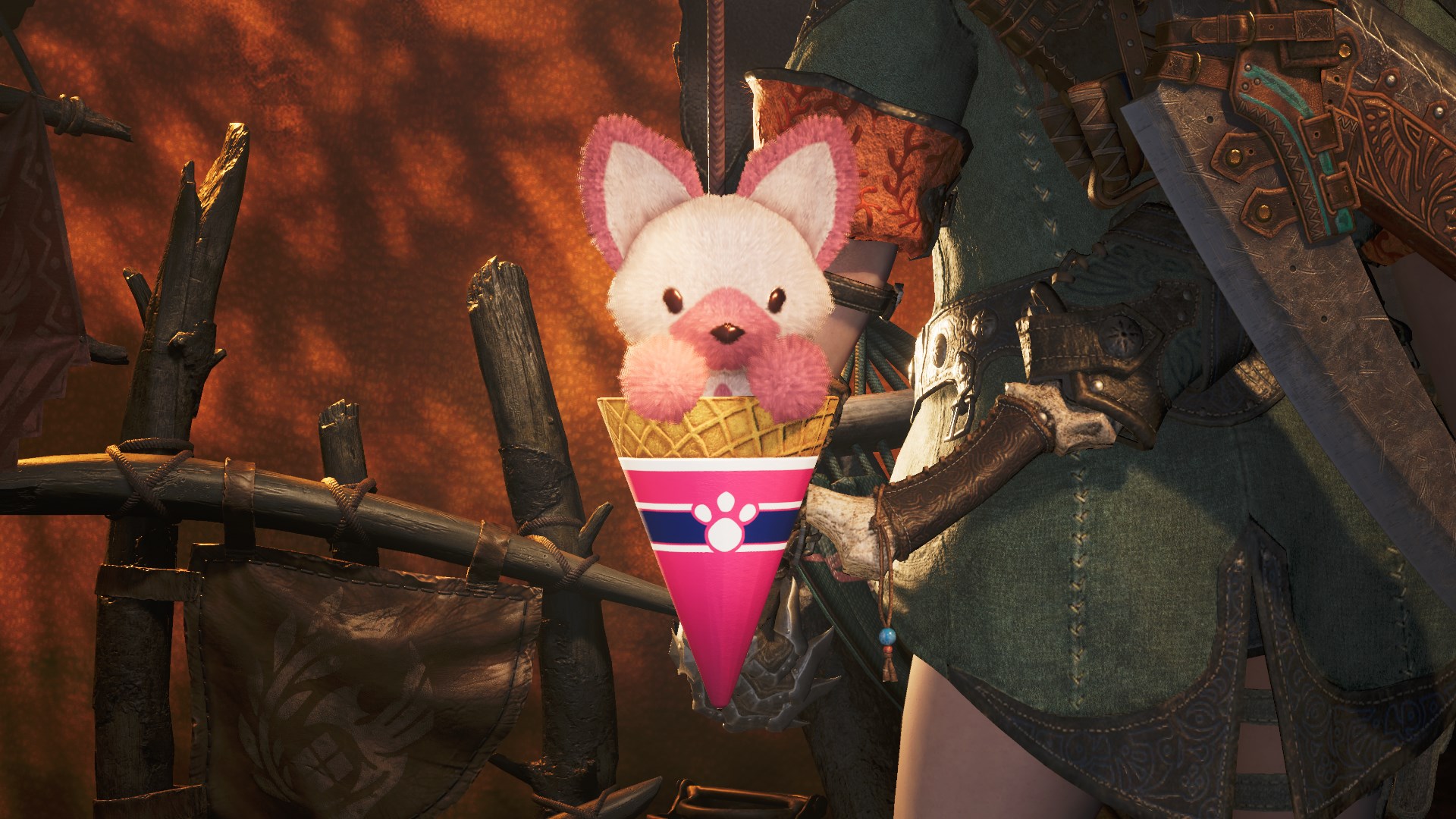 Ein Anhänger, der wie ein Erdbeer-Eiscreme-Felyne aussieht.