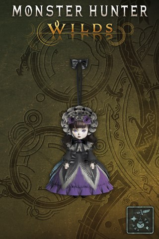 Ein Puppen-Anhänger mit einem geheimnisvoll-violetten Outfit, inspiriert von Lala Barina.