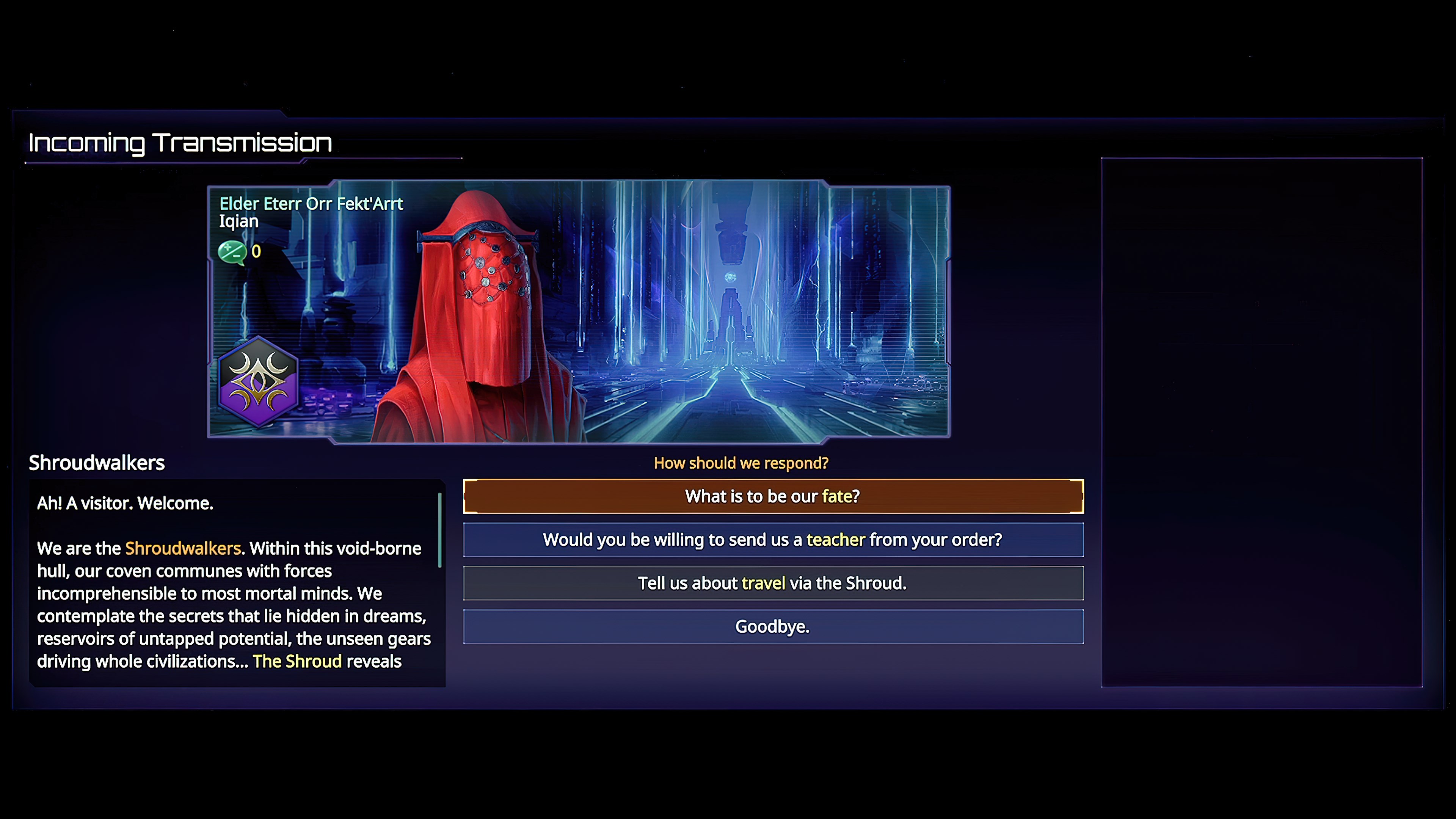 · Lehrer des Schleiers: Dein Imperium hat Kontakte zu den merkwürdigen, als Schleiergänger bekannten, Psions aufgenommen und dabei so einiges über die Erweiterung des Bewusstseins gelernt!