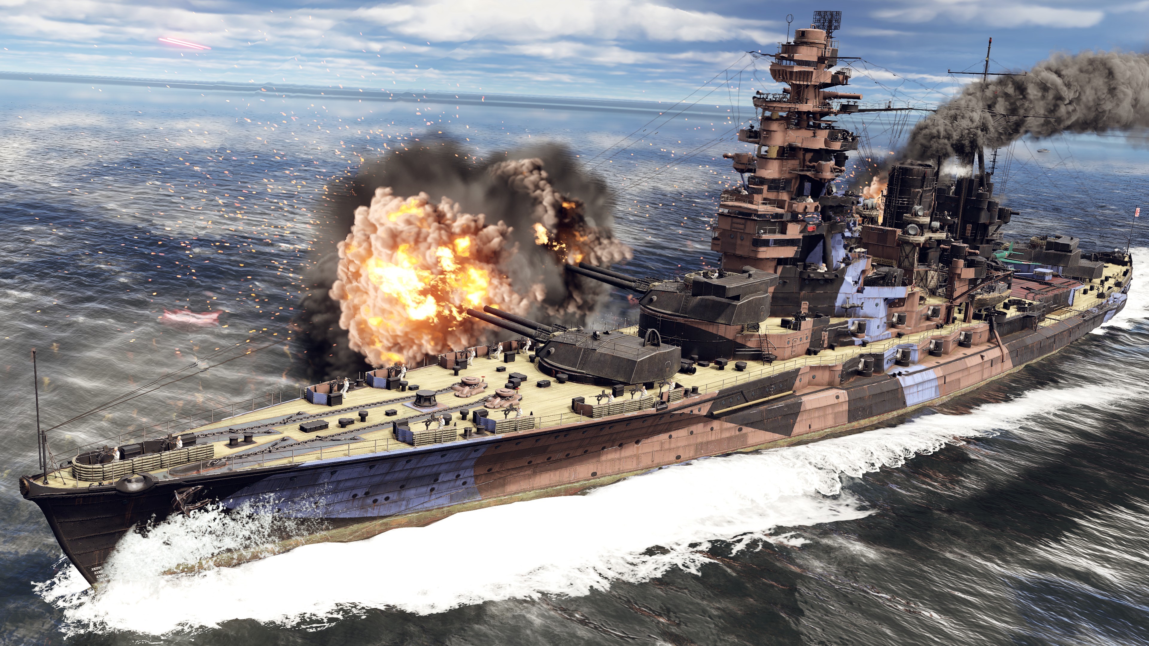Im Spiel wird die Nagato in ihrer Konfiguration von 1944 dargestellt, mit verbesserter Bewaffnung und einem verstärkten Flugabwehrarsenal. Die Hauptbatterie besteht aus vier doppelten 410-mm/45-Geschütztürmen vom Typ 3. Dank erhöhter Elevationswinkel und der hervorragenden Leistung der neuen panzerbrechenden Geschosse vom Typ 91 kann dieses Schiff Ziele auf große Entfernungen effektiv bekämpfen.