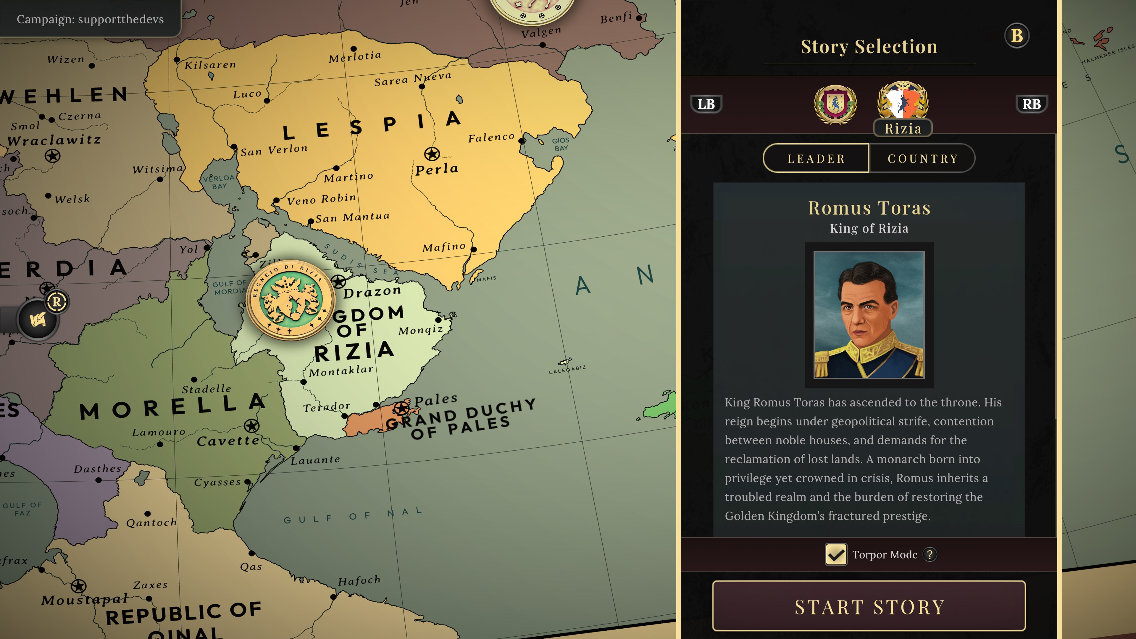 Übernimm als König Romus Toras die Krone und führe das Goldene Königreich in eine neue Ära. Erobere verlorene Gebiete mit Diplomatie oder Gewalt zurück. Engagiere dich mit Adelshäusern und verwalte die Ressourcen Rizias. Wie wirst du regieren?