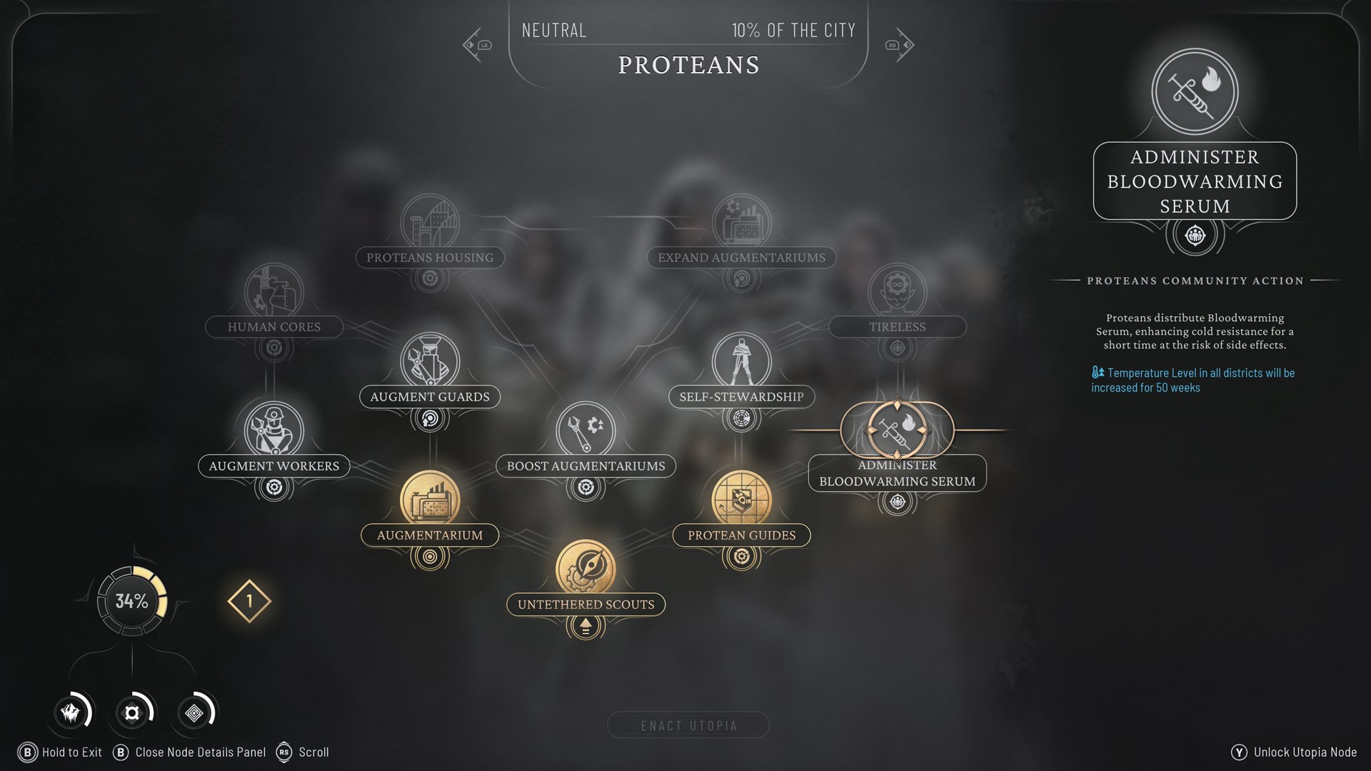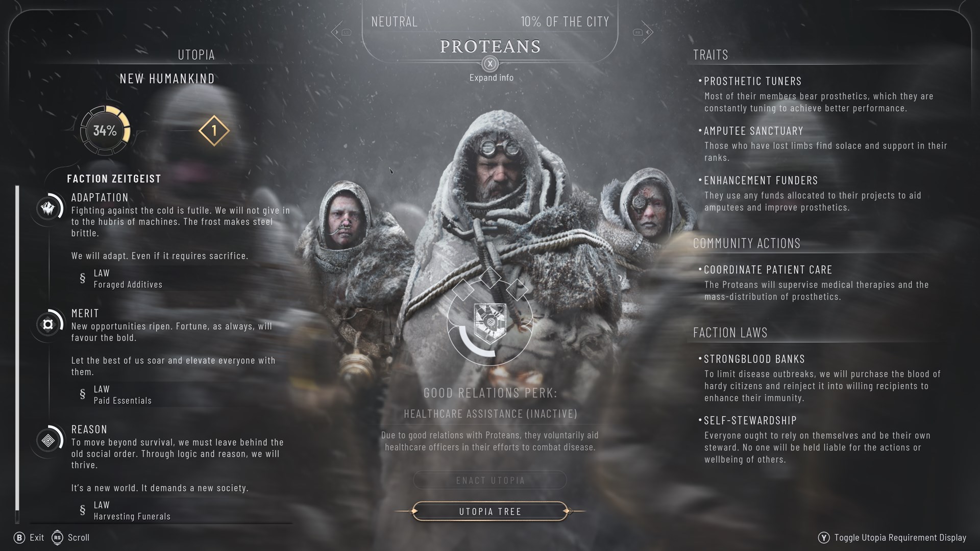 Jede Fraktion hat nun ihre ganz eigene Vorstellung vom Paradies, die in Form eines Baumes strukturiert ist und auf Neigungen basiert. Wenn du ihr Vertrauen verdienst, kannst du spezielle Gesetze, Gebäude und Fähigkeiten freischalten, um ihre individuelle Identität zu stärken. Schalte alle Knotenpunkte des Utopia-Baumes frei, um deine singuläre Vision der Stadt umzusetzen und die Gesellschaft in ihrer Gesamtheit auf einen gemeinsamen Pfad in die Zukunft führen und Spannungen dauerhaft ausmerzen zu können.