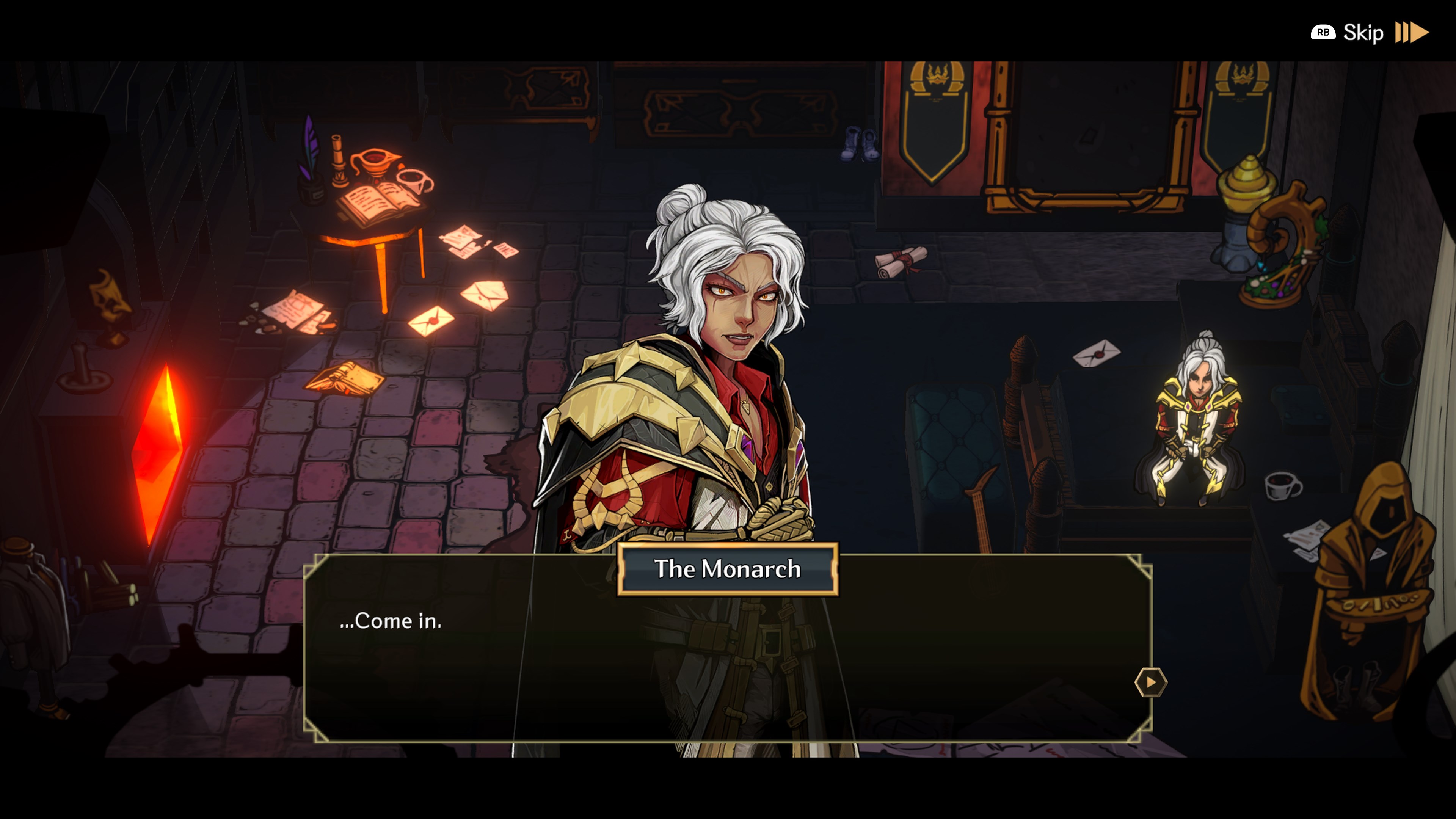 In einem verfallenen Tempel wurde eine Maske gefunden, die die Autorität von Hellforn, der Göttin der Kunst und des Wahnsinns und ursprünglichen Besitzer des Dungeons, verkörpert. In dieser Zeitlinie zögerte The Monarch keine Sekunde und nahm die Maske an und erhielt sogar das große Kunsttalent des ursprünglichen Besitzers. Mit seinem leuchtend roten Mantel und der weißen Hose werden deine Feinde den „Fashionista“ bewundern, der über diesen Dungeon herrscht, doch das grimmige Gesicht der goldenen Maske treibt ihnen schnell den Respekt ein.