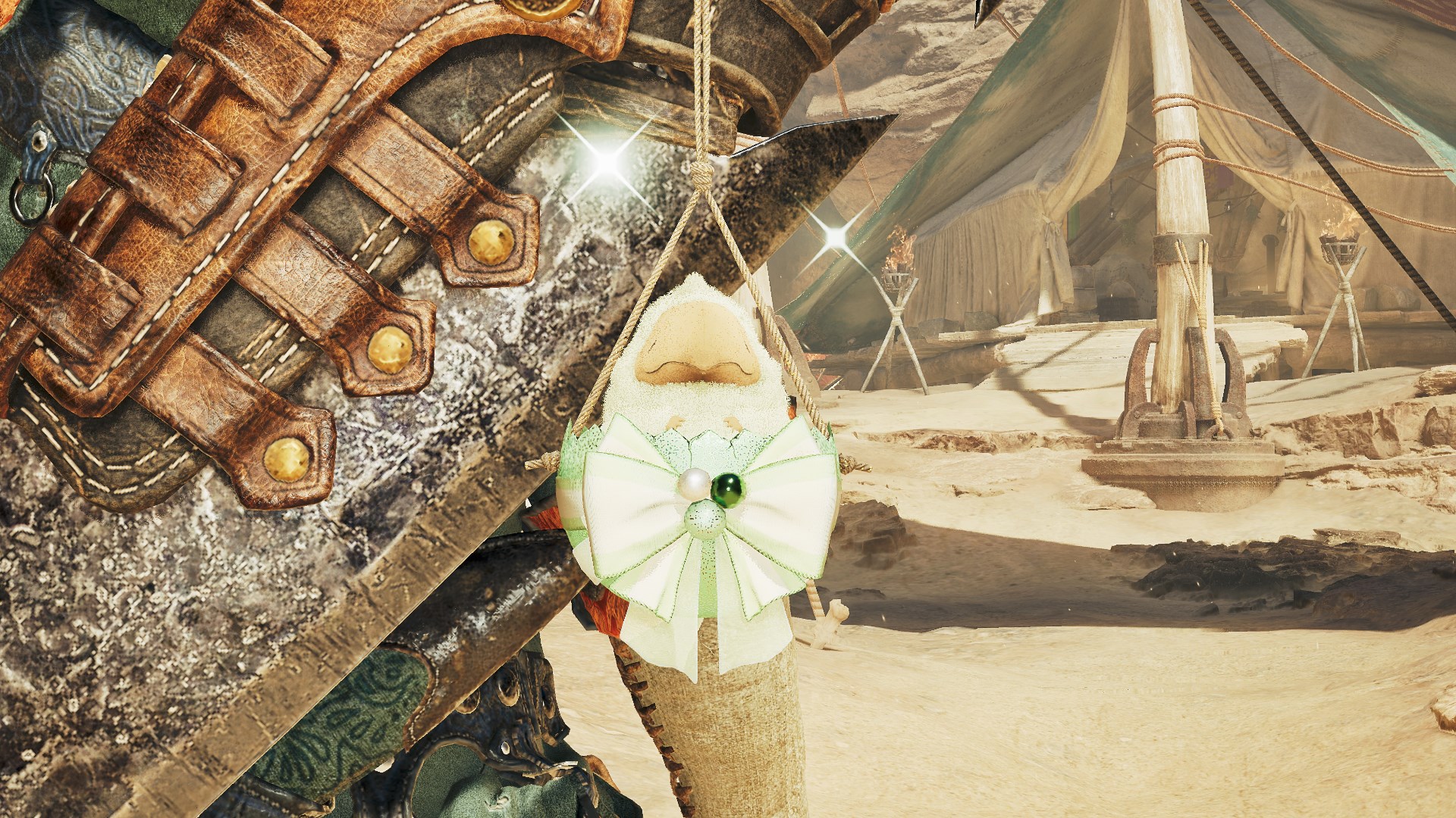 *Du kannst Anhänger aus dem Aussehen-Menü in deinem Zelt auswählen. Wende sie auf deinen Jäger an, indem du das Aussehen der Ausrüstung wählst, oder wähle "Saikrii-Anpassung", um sie auf deinen Saikrii anzuwenden.