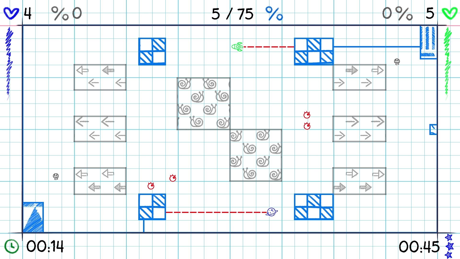 Fordere dich selbst in 25 brandneuen Kritzel-Levels mit gefährlichen Gegnern heraus. Ziehe deine Linie, weiche Feinden aus und schließe über drei Viertel jeder Seite ein, um sie zu erobern. Spiele allein oder im Koop und füllt die Seiten so schnell wie möglich!