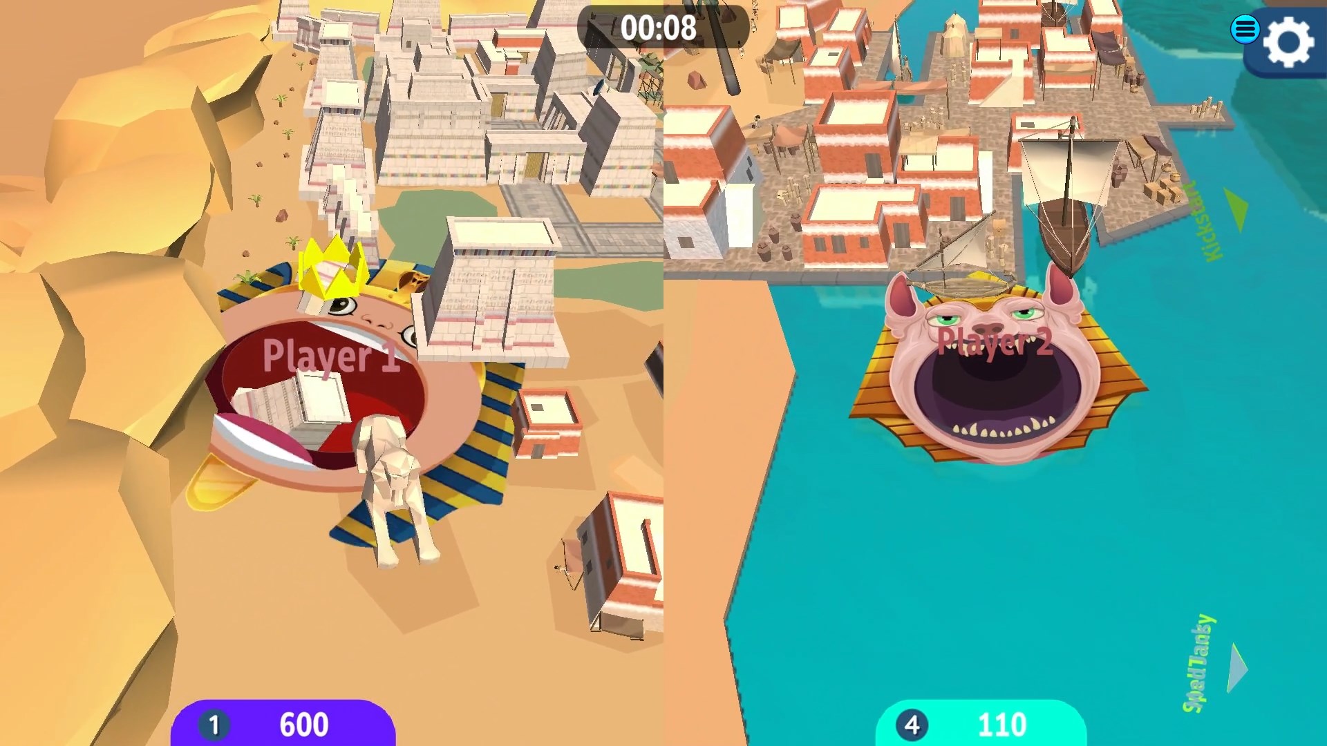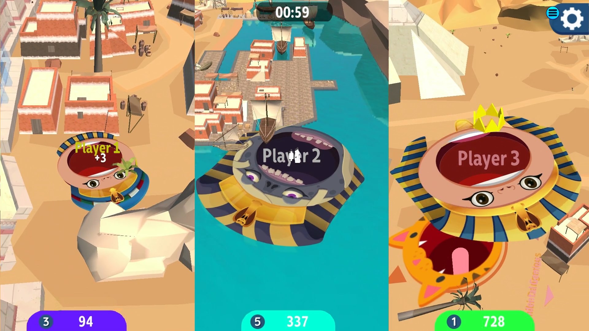 Wähle dein cooles Outfit, verschlinge Vasen, Stände, Häuser, Sphinxen, Schiffe, Pyramiden und werde GROSS!
