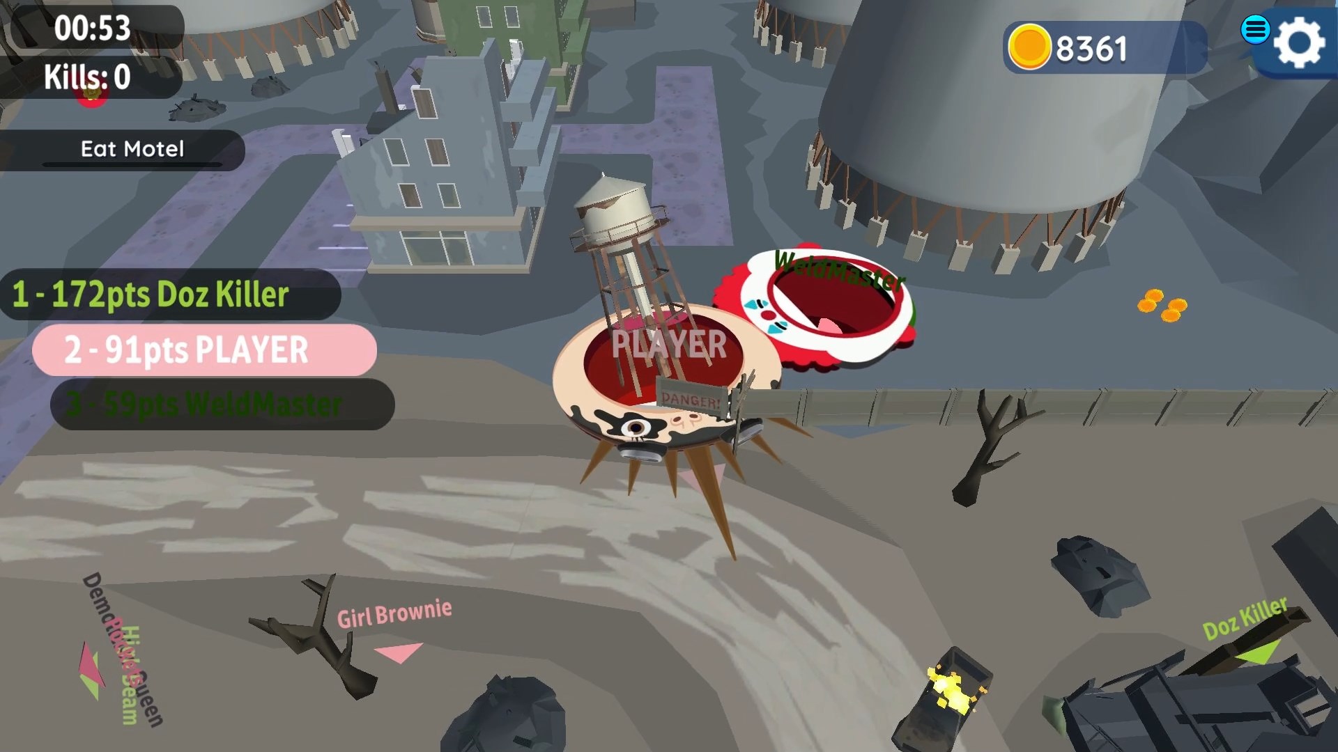Wähle dein cooles Outfit, verschlinge Müll, Autos, Verstecke, Motels, verlassene Gebäude, Kraftwerke und werde GROSS!