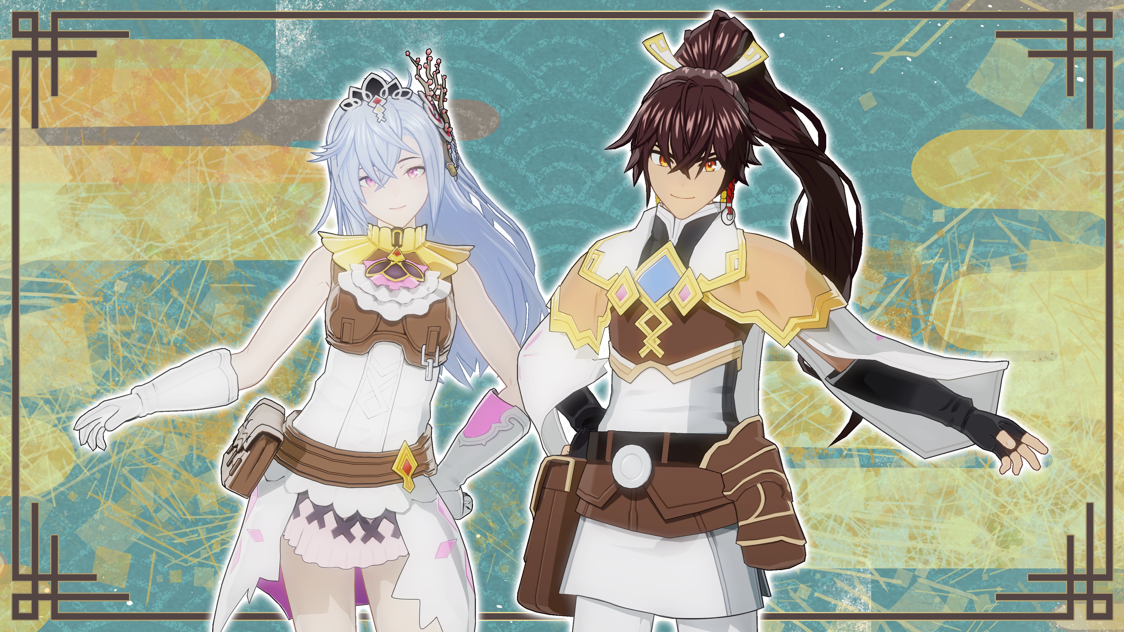 Trage Outfits, die an Lest und Frey, die heldenhaften Protagonisten von Rune Factory 4 Special, angelehnt sind! Subaru trägt Lests klassisches Outfit, während Kaguya Freys unverwechselbaren Look anlegt.