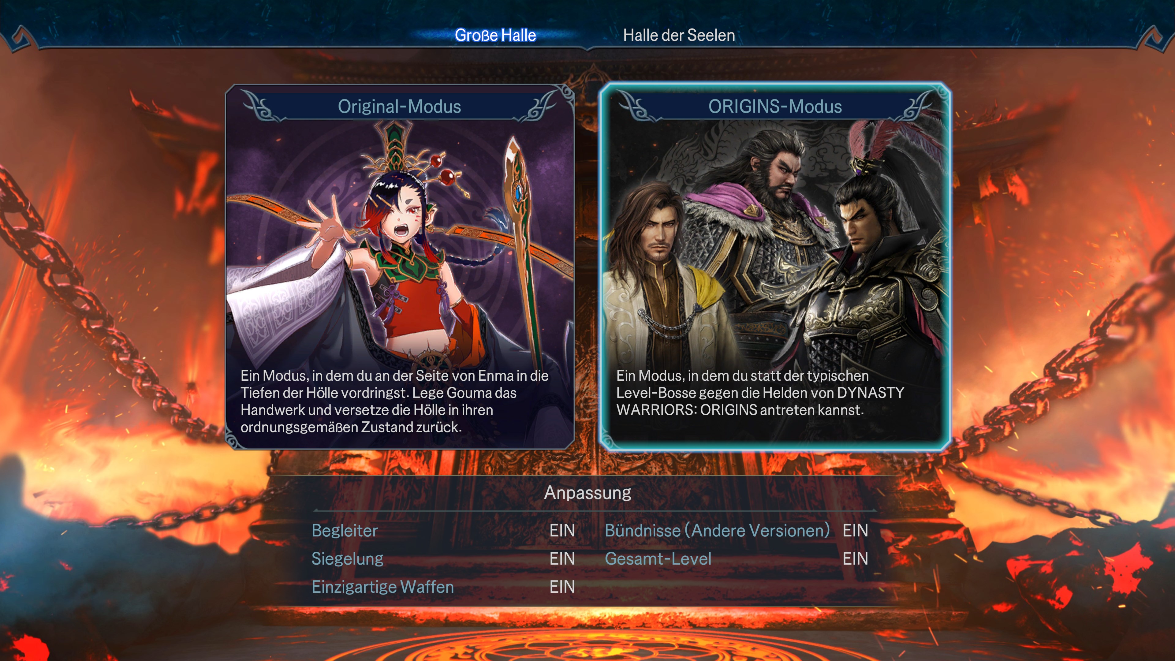 Ein Set mit neuem Inhalt von DYNASTY WARRIORS: ORIGINS, darunter spielbare Charaktere, Modi, Systeme, Bosse und Hintergrundmusik. Der ORIGINS-Modus wird verfügbar, sobald ein Level-Boss besiegt wurde. Alle anderen Inhalte werden verfügbar, sobald das Tutorial beendet ist.