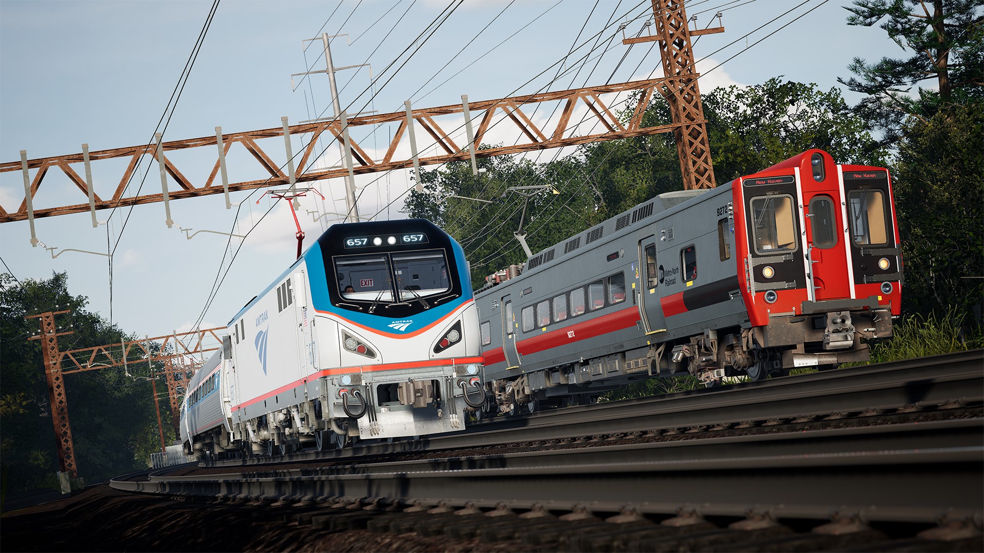 Bedienen Sie die Metro-North M8 und Amtrak ACS-64 nach unterschiedlichen Fahrplänen von zwei New Yorker Bahnhöfen aus und fahren Sie durch die Vororte mit einer Vielzahl von Haltestellen. Bewältigen Sie Rangierarbeiten und lokale Lieferungen mit der CSX SD40-2.