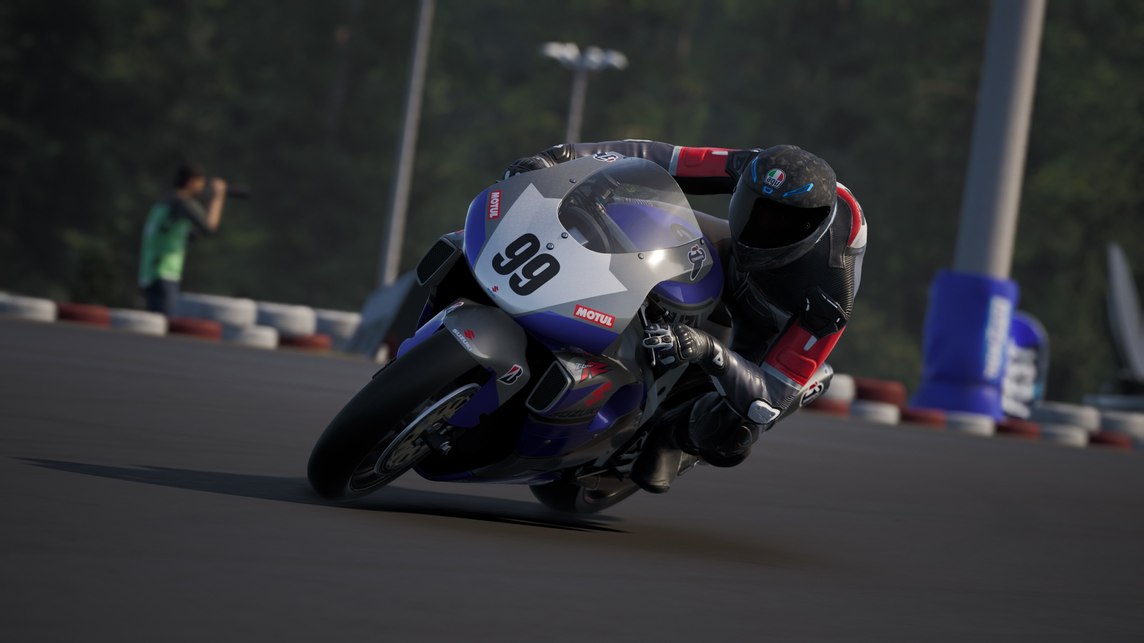 Und während sich die Suzuki TL 1000 R (Racing-modifiziert) mit ihrem V-Twin-Motor wild und kraftvoll anfühlt, führt dich die Supersport-Honda CBR 600RR HRC präzise von Kurve zu Kurve.