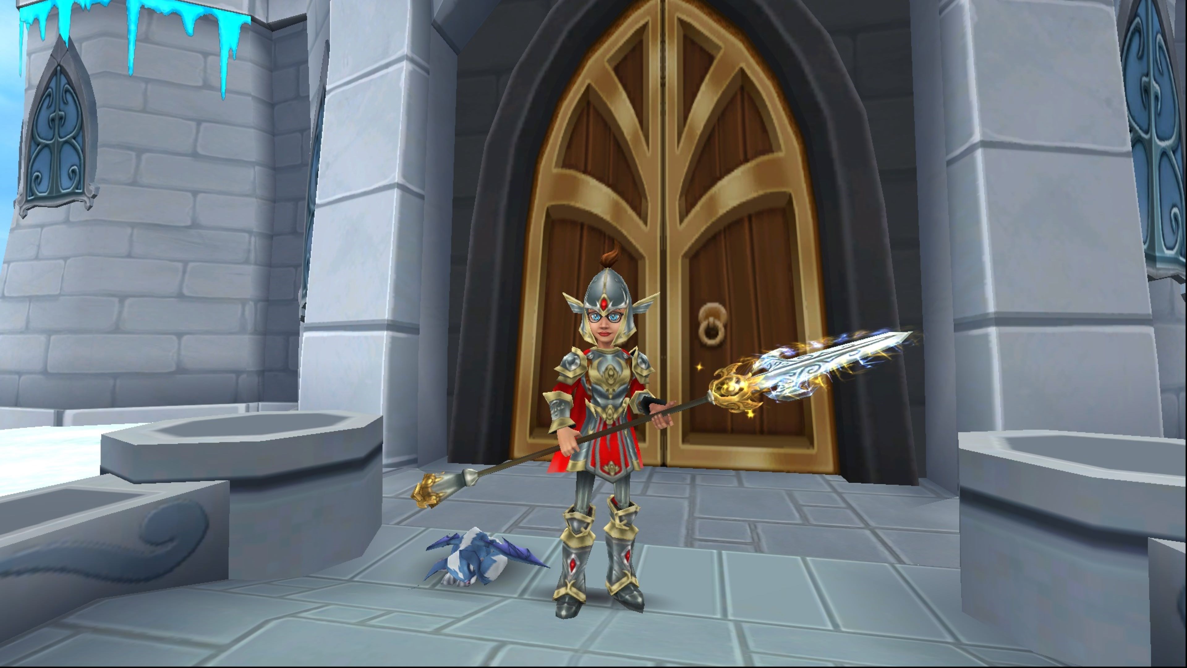 Das Majestätisches Aktionspaket enthält das Schloss 'Turm des Winterwindes‘, das Zweier-Reittier 'Arthurischer Drache‘, die Silberlanze des Tagesanbruchs, die Wahrsilberrüstung, das Haustier 'Biest‘, den Calibur-Wandteleporter, ein Zusätzliches Schloss-Elixier und 5.000 Kronen. Max. Ausrüstungsstufe: 100
