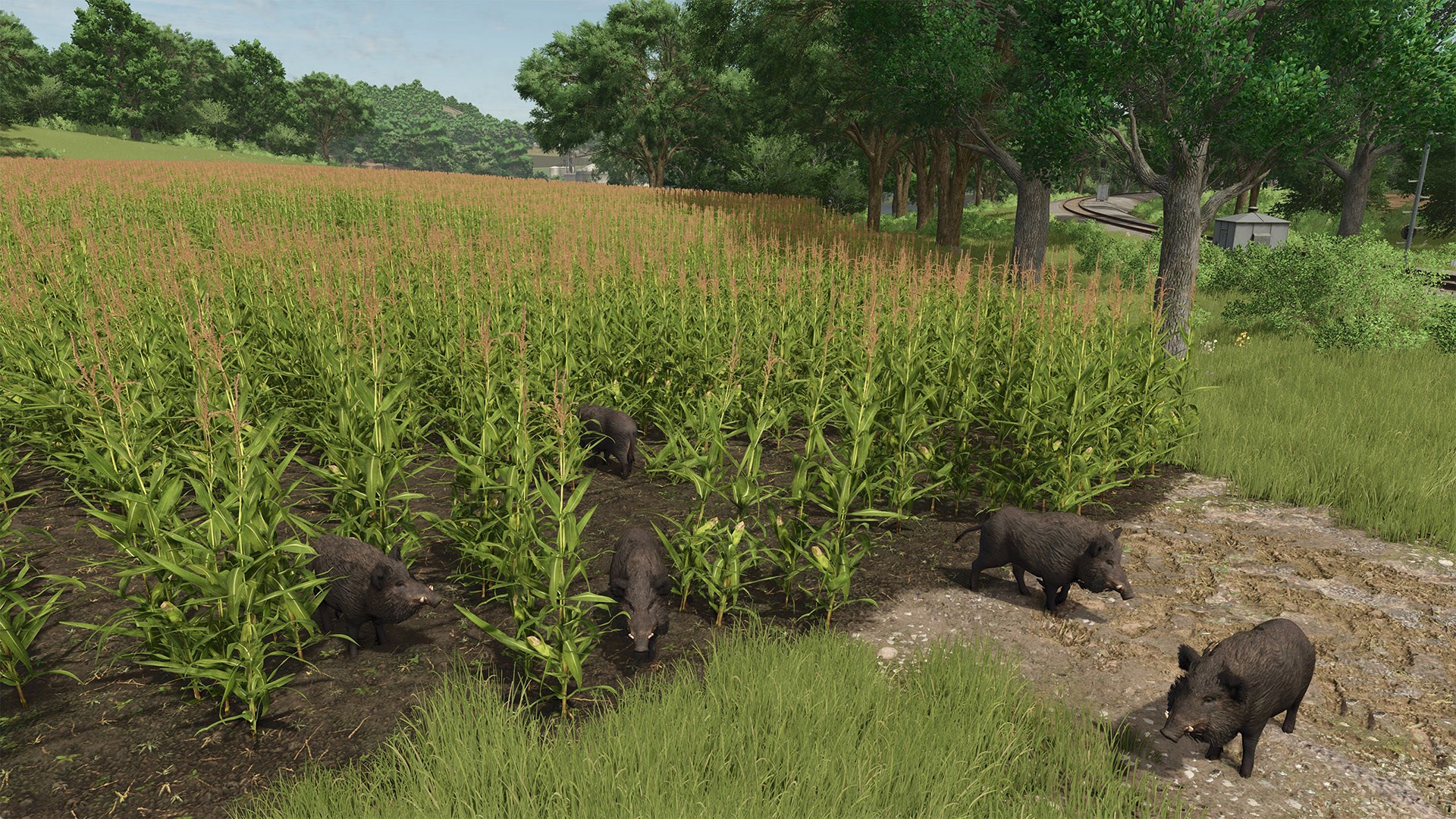 Pflegt Grünflächen mit Technologie von Vredo, dem renommierten Spezialisten für Nachsaat, Gülleinjektion und Selbstfahrer. Währenddessen streifen Wildschweine über die Felder und bedrohen euren/deren Ertrag.