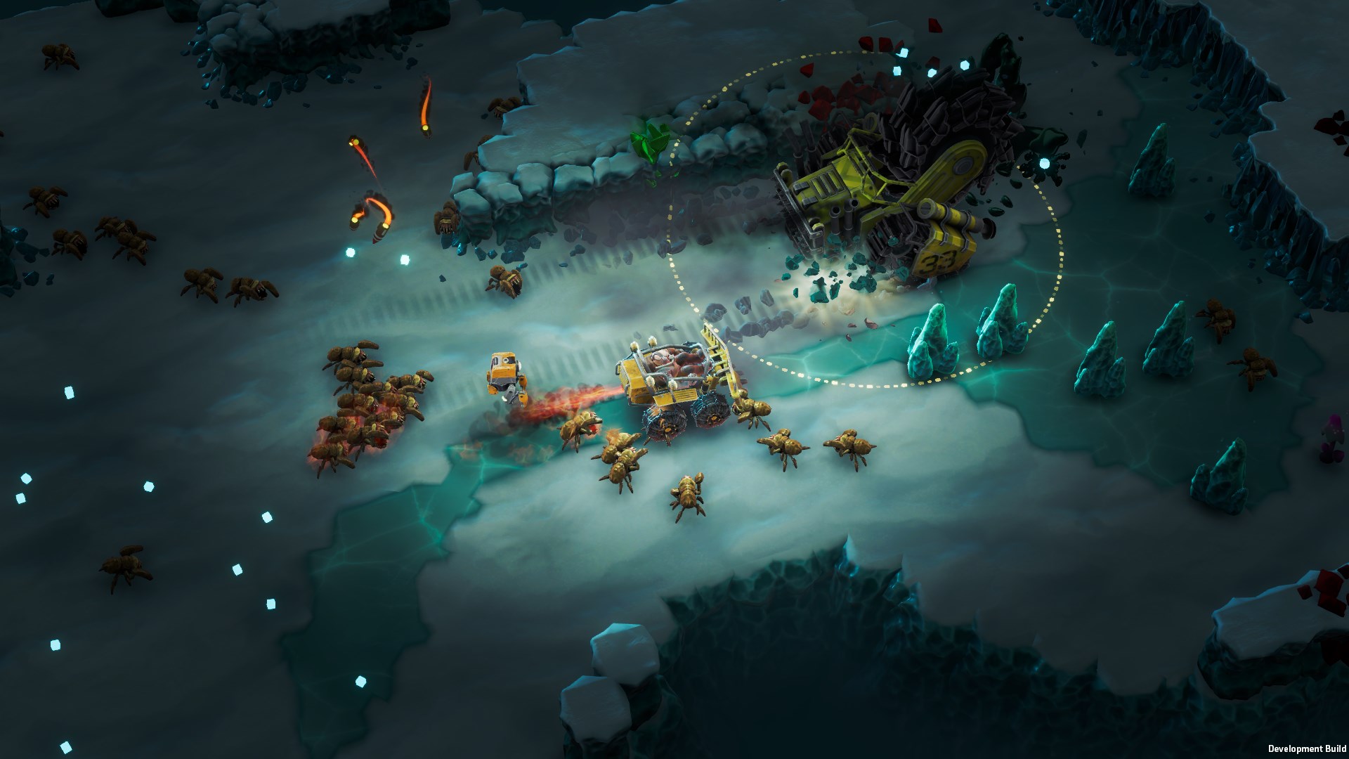 Die Eisige Einöde führt ein neues, fragiles Gebiet ein, wo die Umgebung genauso viel Schaden anrichten kann wie dein Arsenal. Opfere Kontrolle für Geschwindigkeit, indem du über glatte Eisflächen gleitest, zerschmettere Gegner mit fallenden Eiszapfen und stelle dich neuen der Kälte angepassten Käfern.