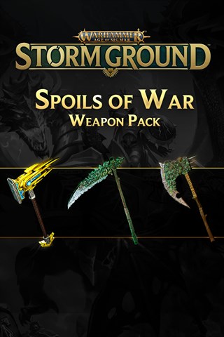 Erweitere dein Spielerlebnis in Warhammer Age of Sigmar: Storm Ground mit dem Waffenpaket „Beute des Krieges“ und erhalte drei neue legendäre Waffen für die jeweiligen Fraktionen, um deine Armeen zu verstärken.