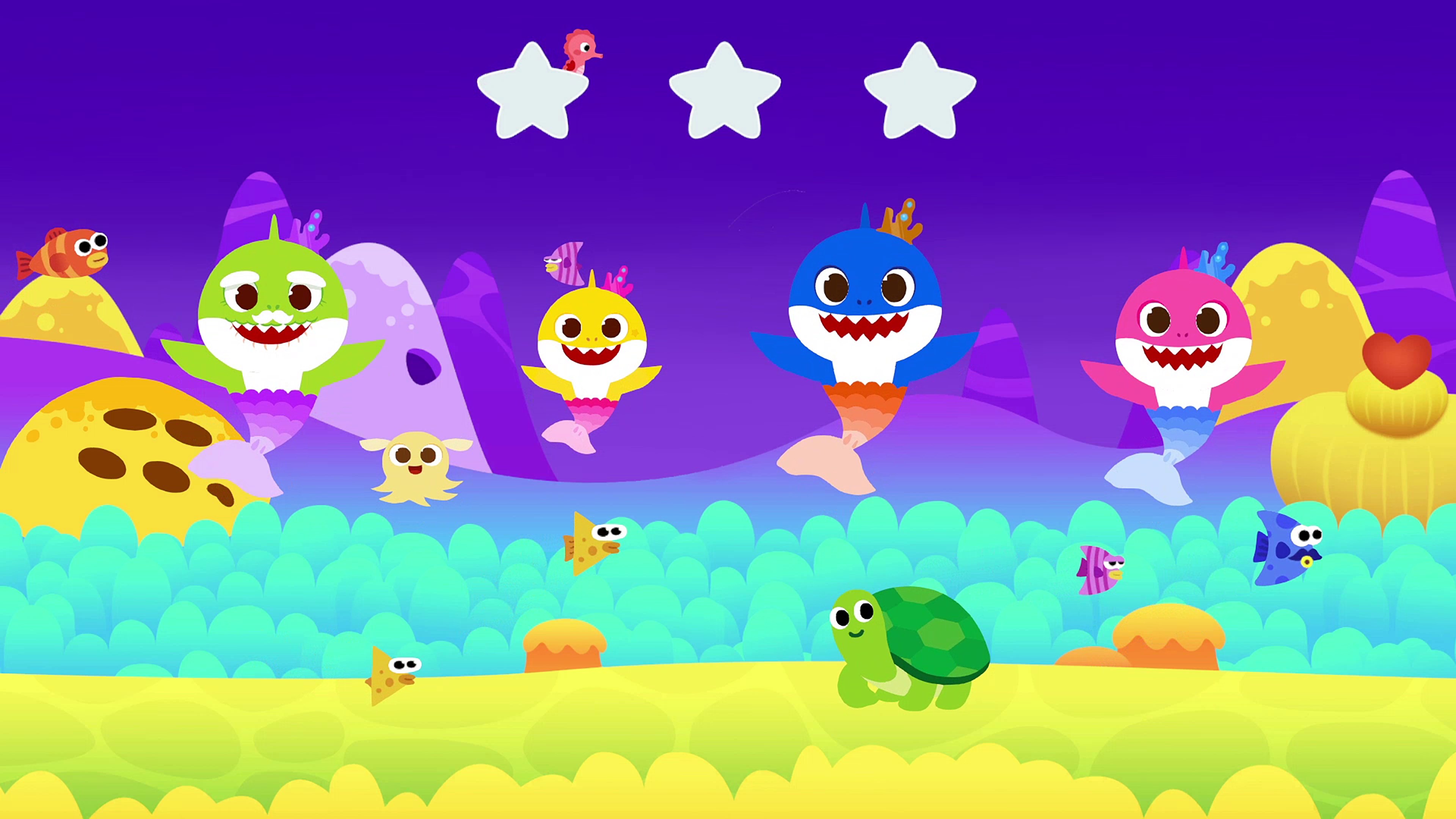 In Baby Shark: Swing & Swim Party kann aus fünf verschiedenen spielbaren Charakteren der Haifamilie gewählt werden, die mit verschiedenen Kostümen, Kleidern und Skins anpassbar sind. Zwei Spielmodi: Man kann entweder auf einer abenteuerlichen Quest Sterne einsammeln und dabei Kugelfischen ausweichen oder sich gegen die Wellen auf die Probe stellen und herausfinden, wie schnell man mit den Brustflossen der Musik folgen kann. Zur Belohnung gibt es jede Menge musikalische Karten, die dem Album hinzugefügt werden können!