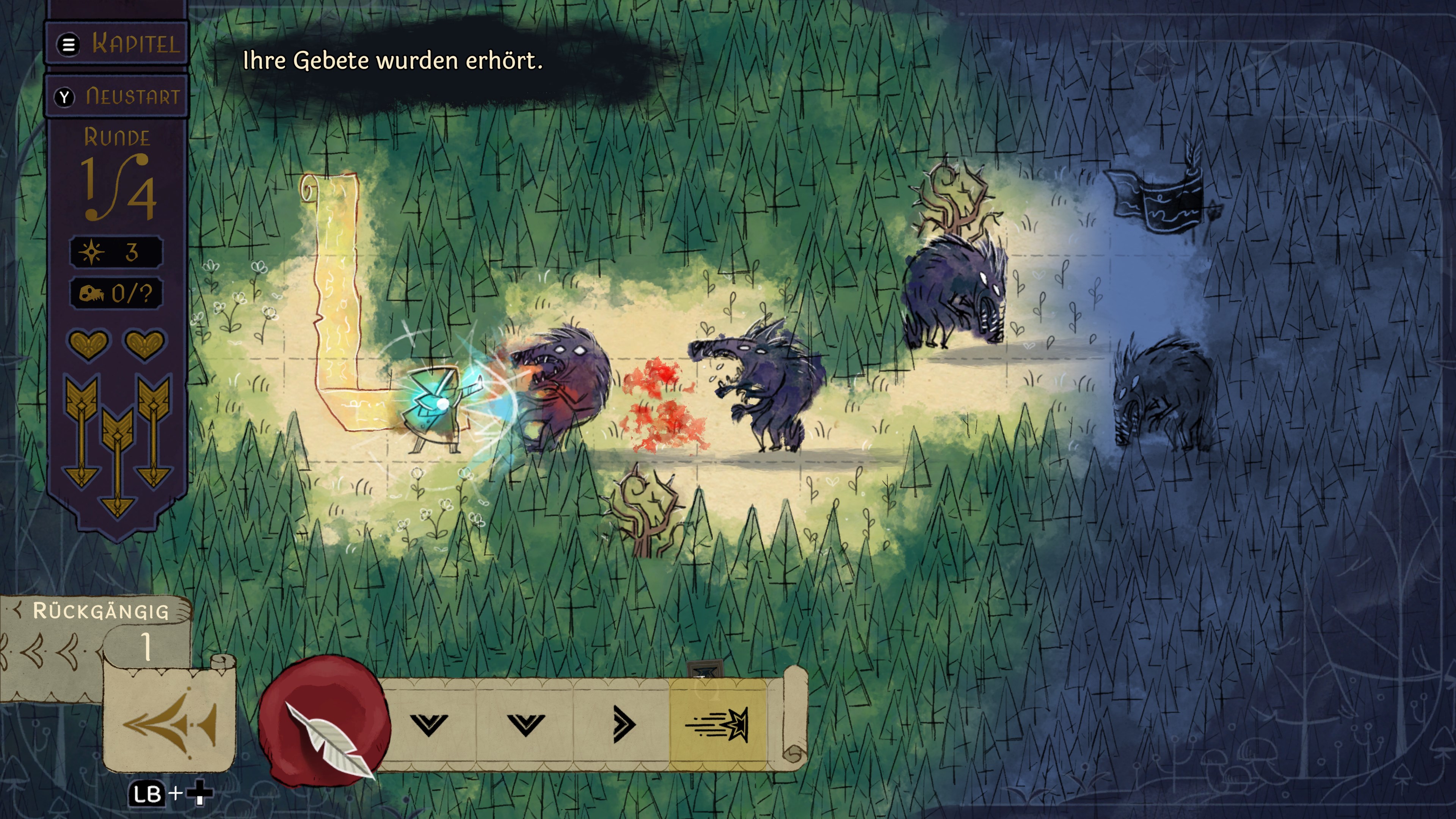 Spiele als mutige Kampfprophetin mit der Fähigkeit, die Bewegungen deiner Gegner vorherzusehen. Plane bis zu sechs Schritte voraus, um deine Gegner auszumanövrieren. Verschieße mit deinem Bogen explodierende Schüsse, Blitzschüsse oder durchbohrende Schüsse und nutze Fähigkeiten wie Rauchbomben und den unsichtbar machenden Schattenschritt, um alle Bestien zu bezwingen, die sich dir in den Weg stellen. Jede Bestie stellt dich vor einzigartige Herausforderungen, wobei manche sich schnell nähern, während andere mehr Treffer einstecken oder aus der Ferne angreifen können.