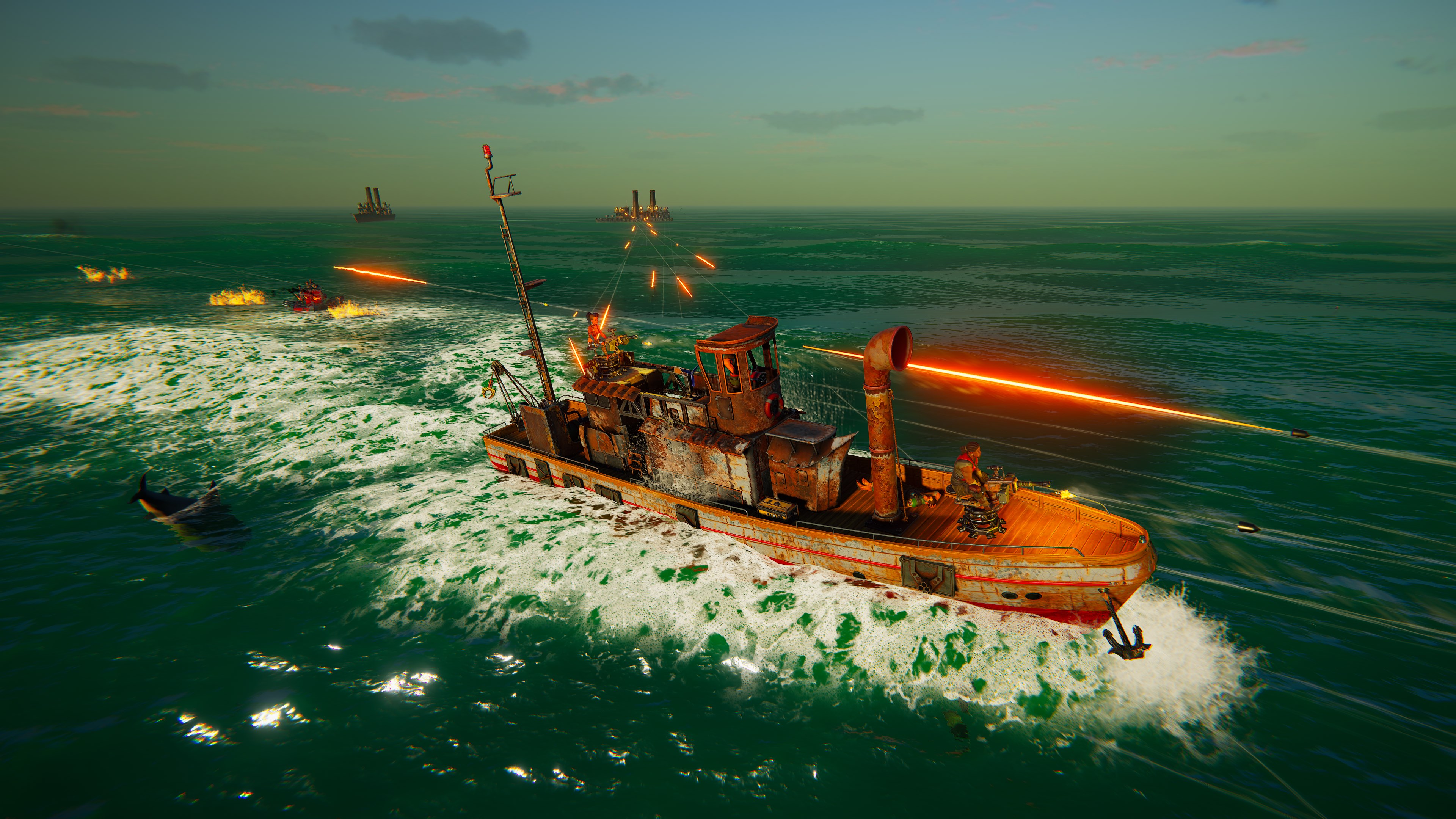 Zuerst spielst du nur gegen KI-Gegner, aber sobald du dir deiner Fähigkeiten und Ausrüstung sicher bist, kannst du auch andere Spieler herausfordern. Sei stets auf der Hut: Wenn du den Auftrag hast, illegale Waren zu transportieren, könnte es sein, dass andere Spieler den Auftrag haben, Schmuggler zu jagen. In Age of Water entscheidet jeder für sich, wer er heute sein will – ein friedlicher Reisender oder ein blutrünstiger Pirat.