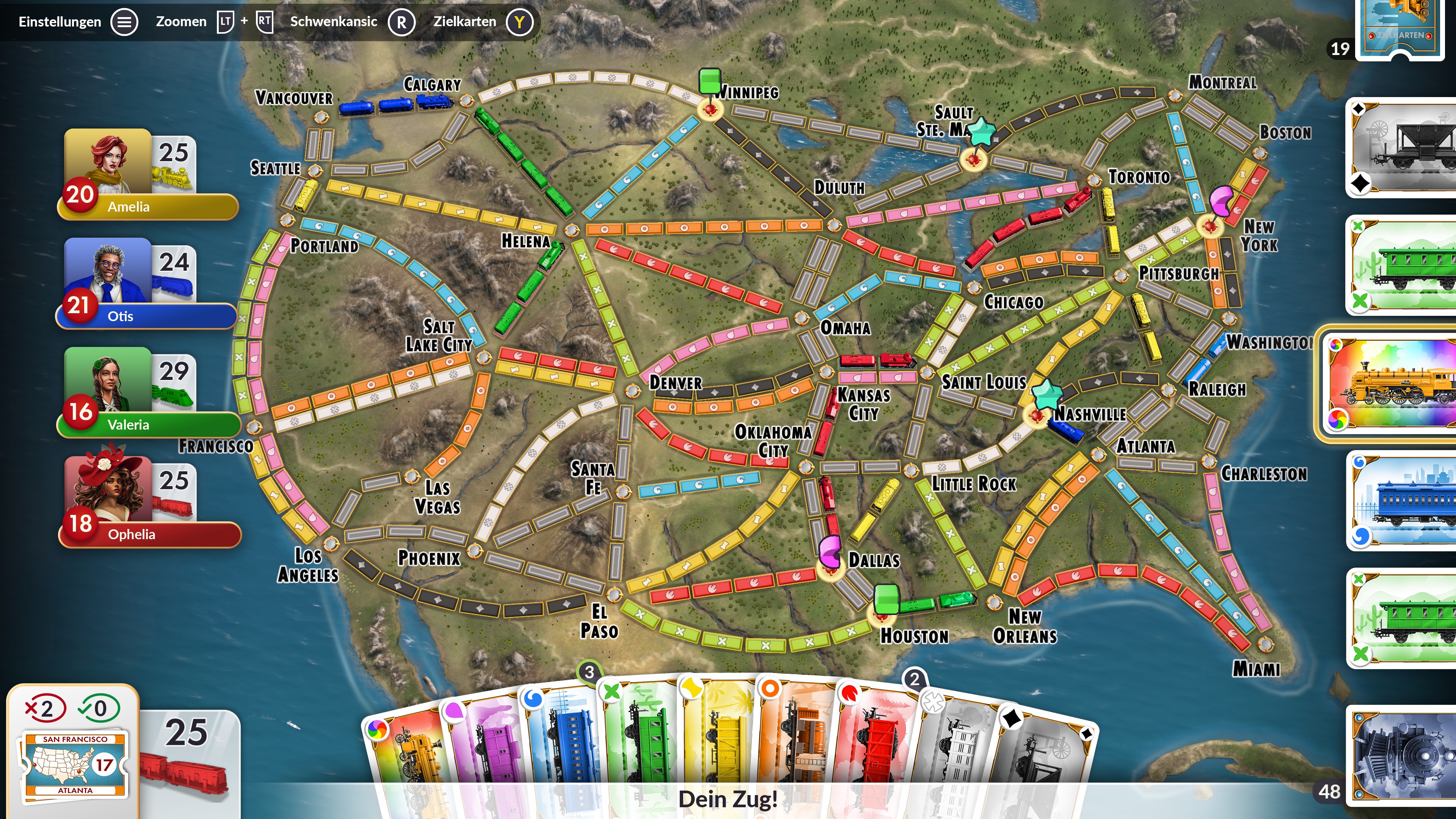 Bauen Sie Strecken zwischen farbenfrohen nordischen Städten, beanspruchen Sie die weitläufige Murmansk-Route und verdienen Sie den Globetrotter-Bonus im weltweit beliebtesten Zug-Abenteuerspiel!