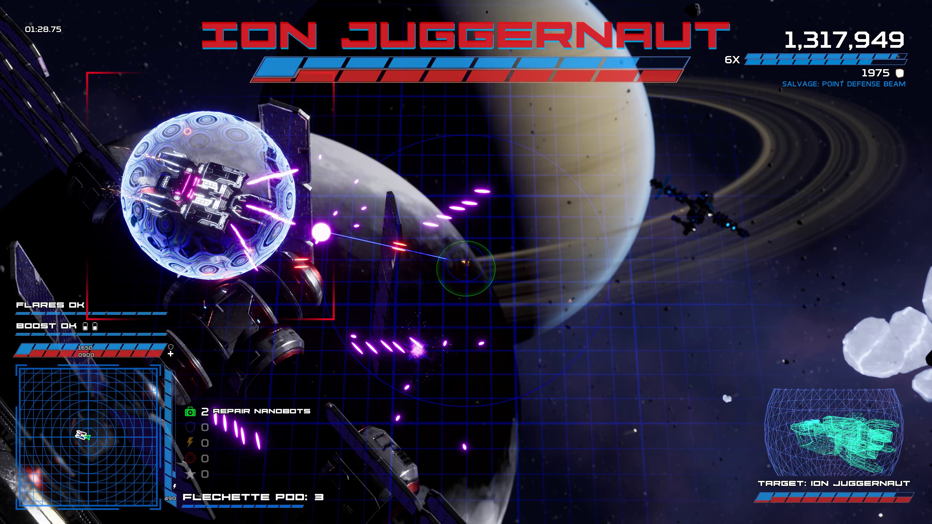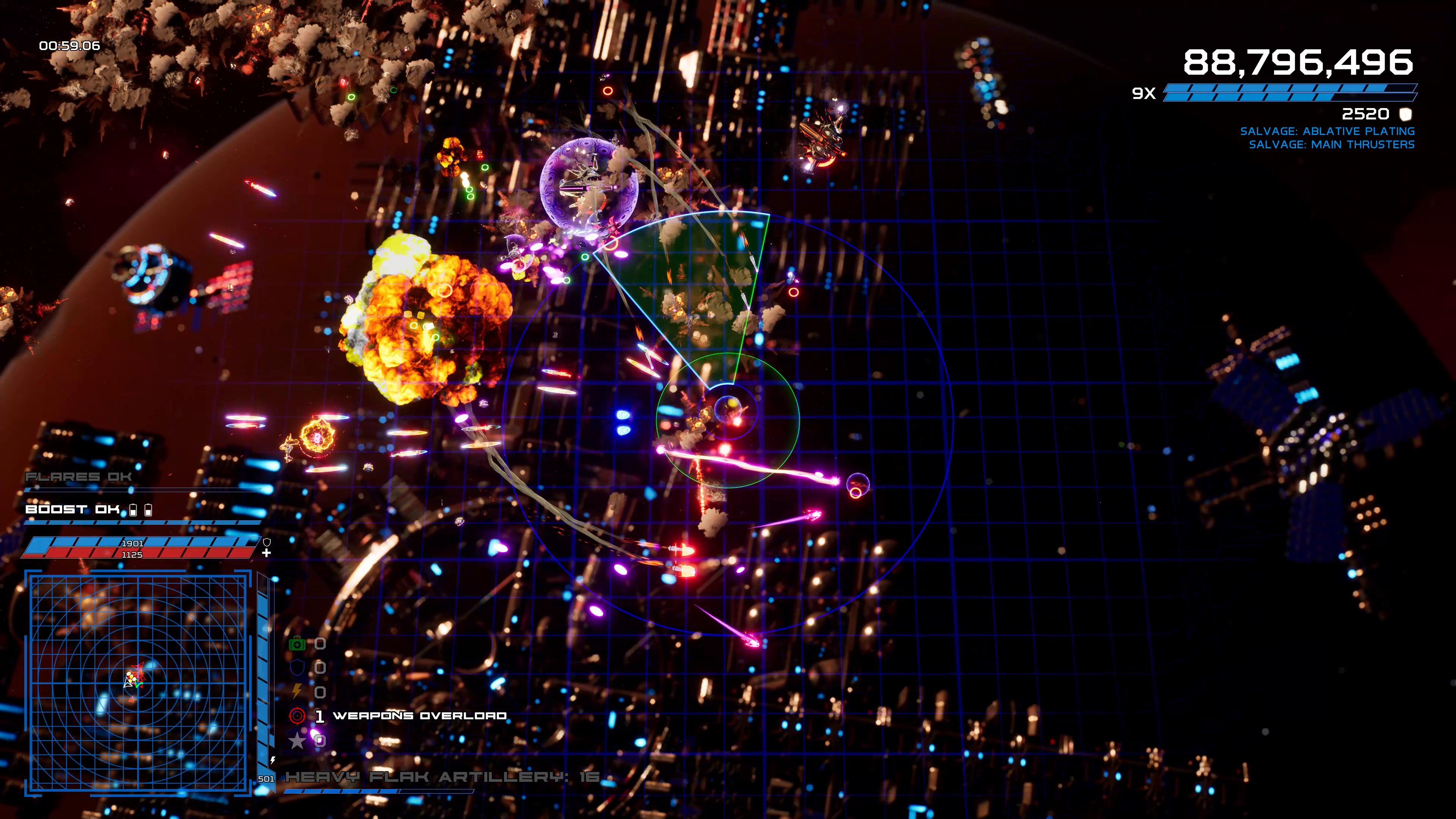 Dieses Spiel ist ein leidenschaftliches Projekt und das erste Spiel von Scott McClusky (alias Coffee Puck Games). Das Konzept bestand darin, ein Spiel wie Escape Velocity mit physikbasiertem 2D-Raumschiff-Gameplay mit dem erhöhten Tempo und der Gamepad-Steuerung eines Spiels wie Geometry Wars zu kombinieren. Man fügte eine gehörige Portion Schiffs- und Waffenanpassung hinzu, die ein wenig an MechWarrior erinnert, und die Möglichkeit, den eigenen Weg zu wählen, ähnlich wie in Outrun, Darius oder Star Fox, und das Ergebnis ist Radio Free Europa.