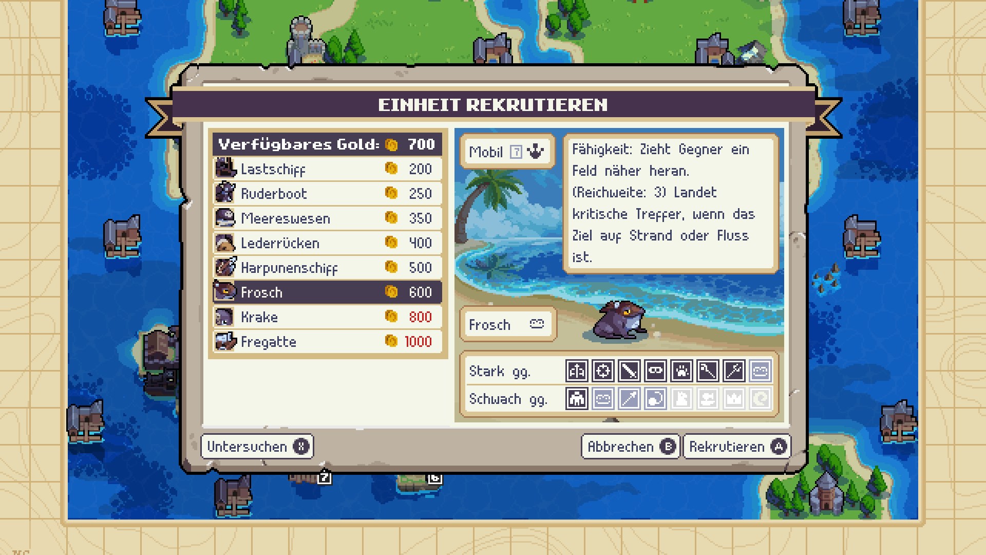Erledige deine Gegner und verpasse ihnen mit dem Groove des Kommandanten den tödlichen Schlag – die einzigartige Groove-Fähigkeit des Kommandanten kann den Ausgang jedes Kampfs beeinflussen. Wargroove 2 führt ein neues Groove-System ein. Du kannst deine Chancen auf den Sieg erhöhen, indem du die Groove-Fähigkeit deines Kommandanten auflädst, um einen noch mächtigeren Angriff auszuführen!