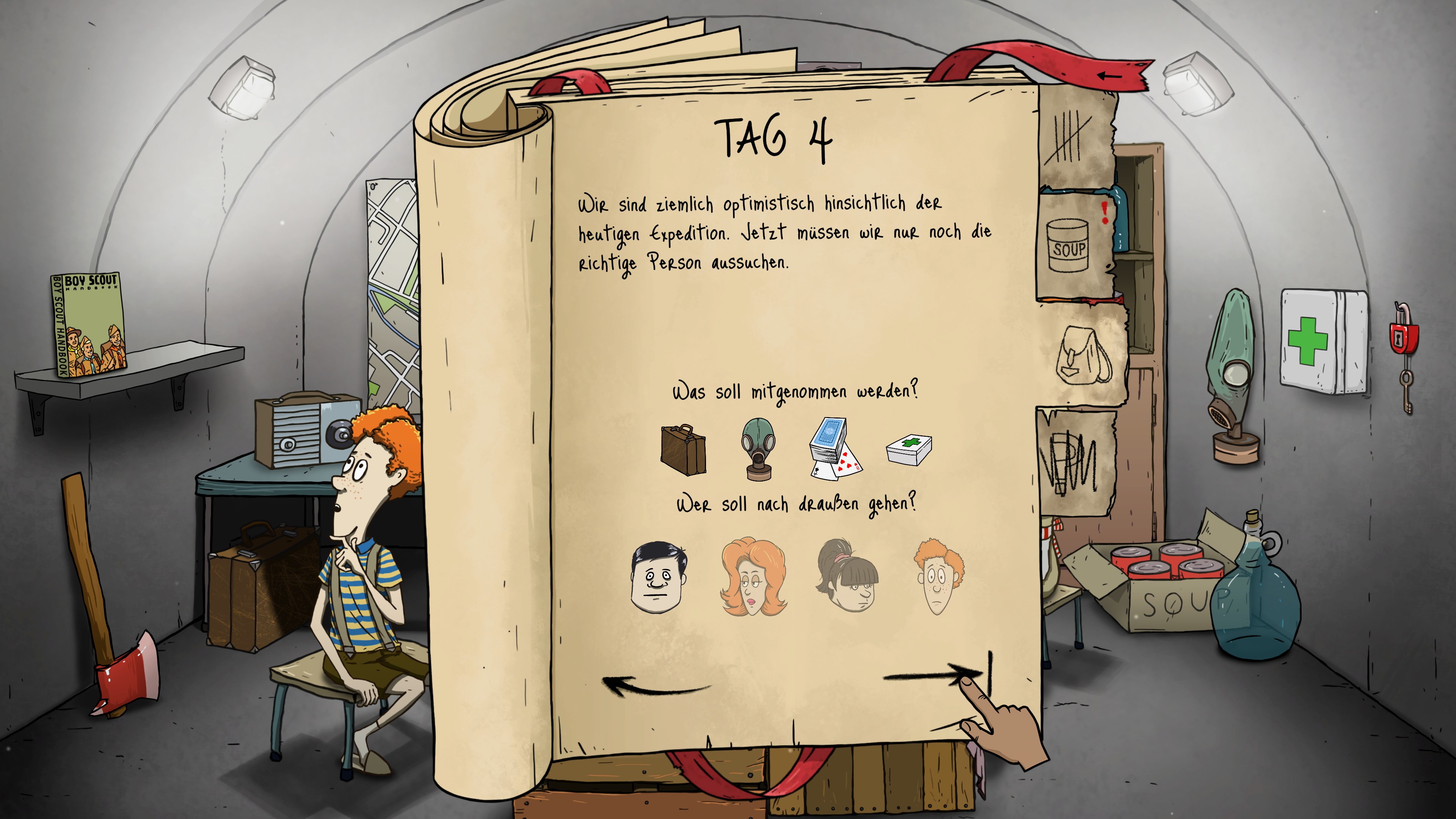 Rechtzeitig und unverletzt zum Atombunker zu gelangen, ist nur der Anfang. Alle Gegenstände und Personen, die du vor der Bombenexplosion gerettet hast, entscheiden über dein weiteres Schicksal. Jede Geschichte wird anders, jeder Tag hält neue Überraschungen bereit. Nehmen alle diese Geschichten ein gutes Ende? Das hängt von dir ab. Rationiere Nahrung und Wasser, nutze deine Ausrüstung, stelle dich schwierigen Entscheidungen und reise ins Ödland.