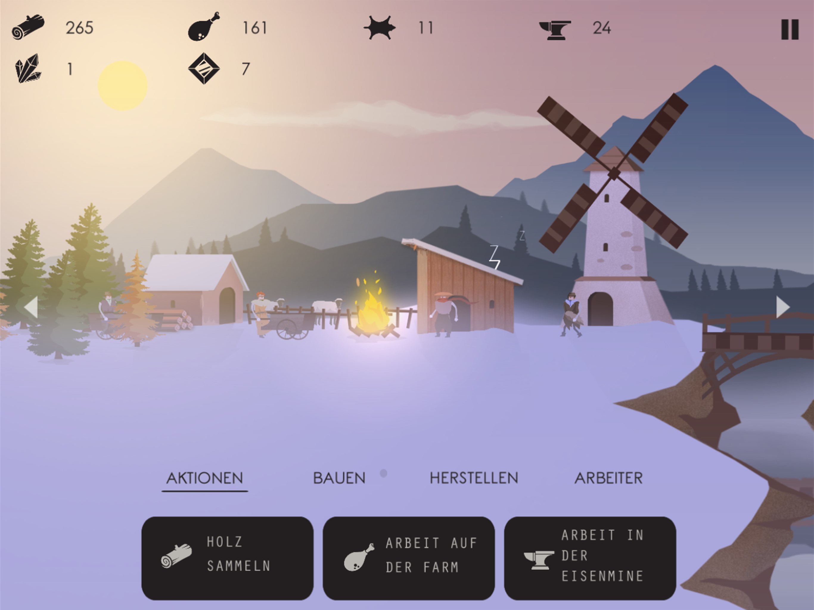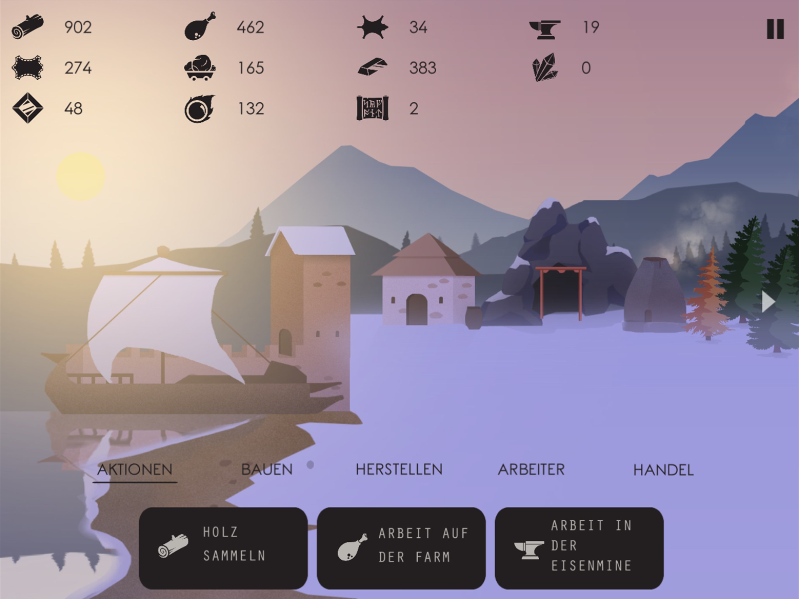 Baue Deine Siedlung in einer Schnee bedeckten Umgebung. Plane Deine Arbeiten sorgfältig. Überwache Deine Ressourcen. Überlebe die Monsterangriffe bei Nacht. Langsam wirst Du Zugang zu neuen Bau- und Handwerksmethoden erhalten. Entdecke neue Völker und treibe Handel mit ihnen. Entdecke die Geheimnisse der Urvölker.