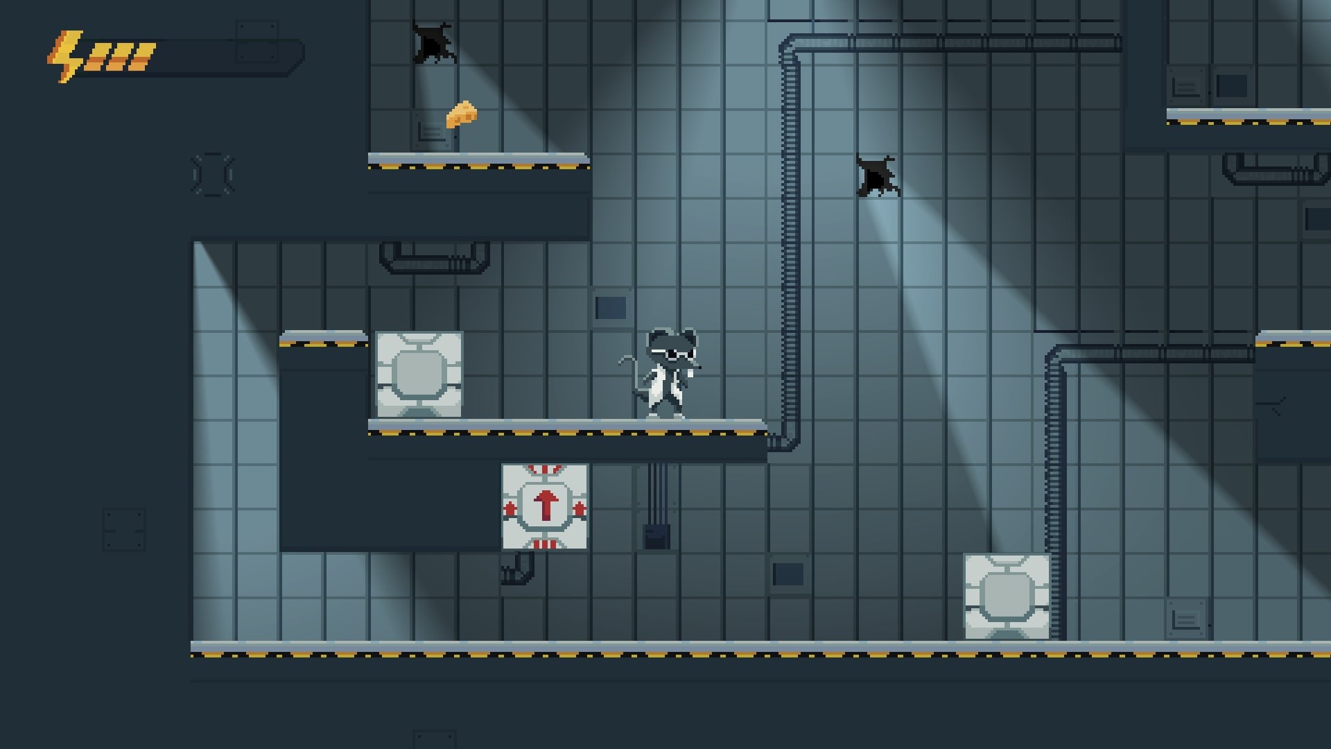 Er entfesselt sich aus dem Käfig und geht in die Rattenlöcher in der Wand, um aus dem Labor zu entkommen.