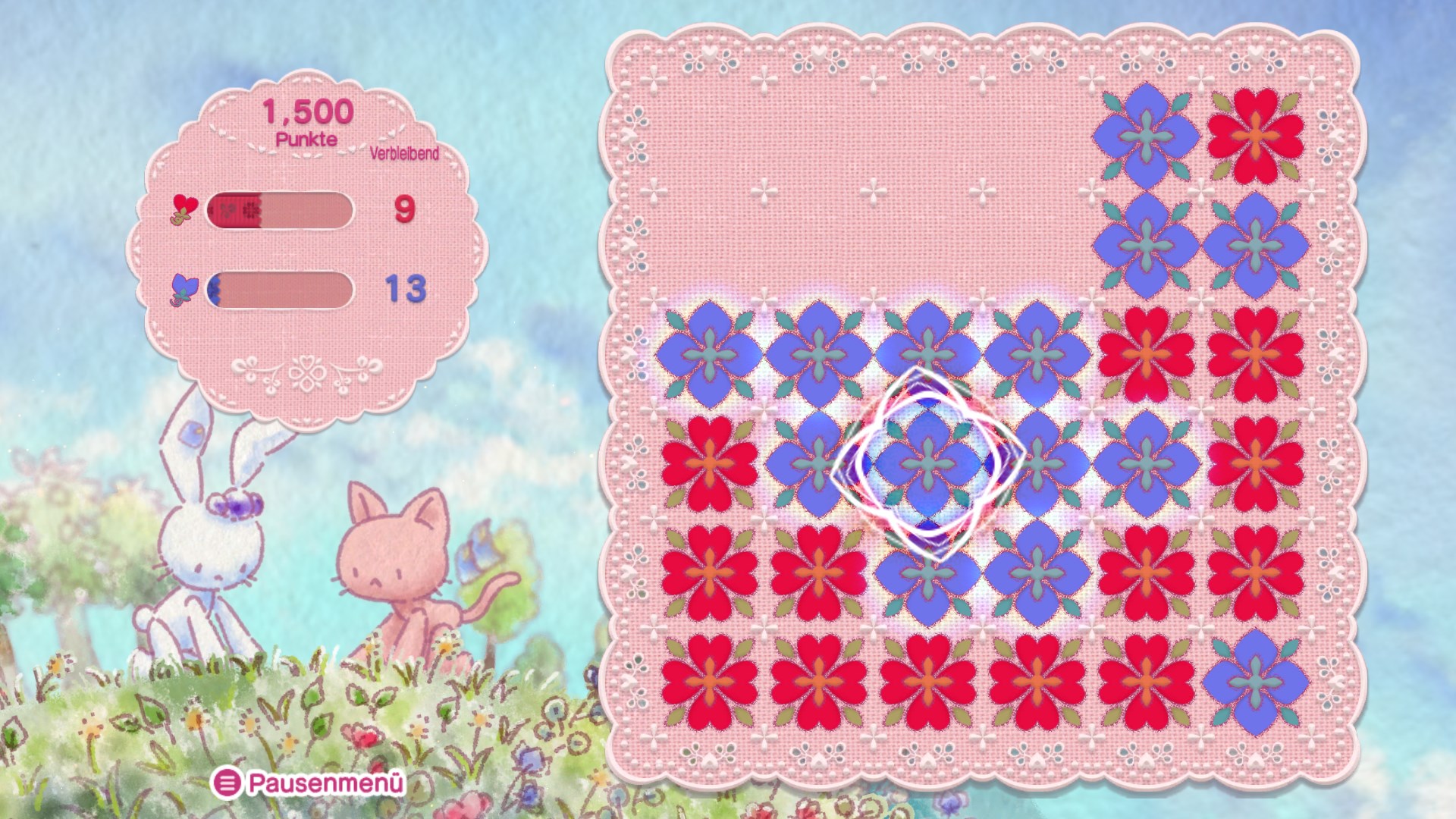 ・Im „Puzzle-Modus“ musst du Wege finden, alle Blumen, die auf dem Bildschirm erscheinen, in Herzluftballons zu verwandeln!