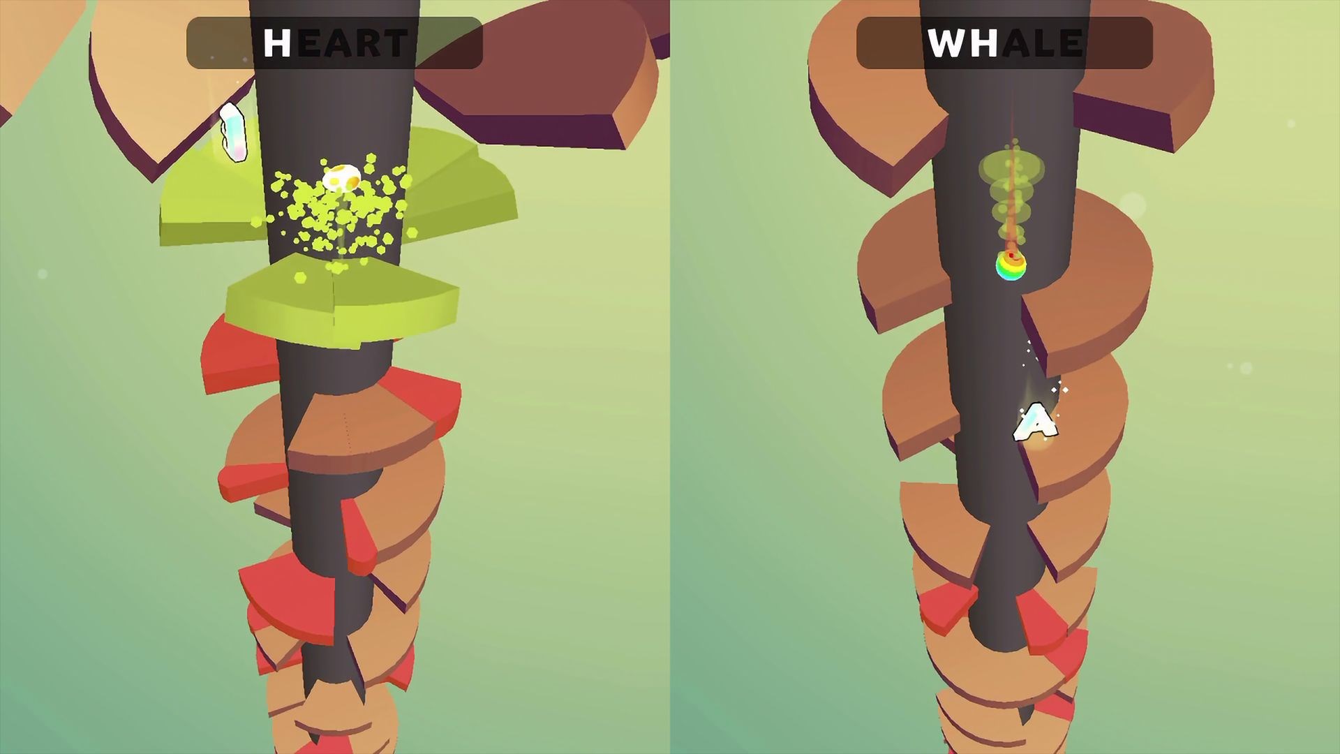 - lasse den Ball in irrem Tempo fallen und bahne dir den Weg durch Helix‑Plattformen