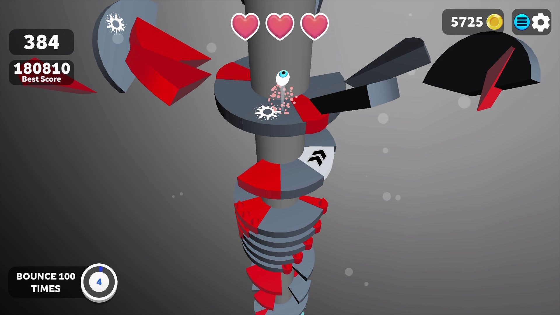 Dein Ball fällt wie ein Stein durch bunte Helix‑Plattformen, die seinen Sturz bremsen – doch berührst du ein rotes Feld, ist alles vorbei! Der Ball zerbricht und du musst von vorne beginnen.