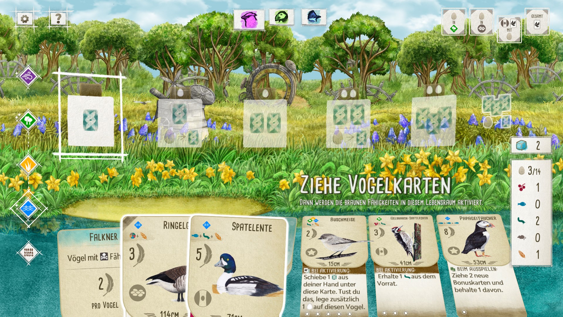 Wingspan (Flügelschlag) ist ein entspannendes, preisgekröntes Strategie-Kartenspiel über Vögel für 1 bis 5 Spieler. Jeder Vogel, den du spielst, verlängert eine starke Kombinationskette in einem deiner drei Lebensräume. Ziel ist es, die besten Vogelarten zu entdecken und in dein Netz von Tierschutzgebieten zu locken.
