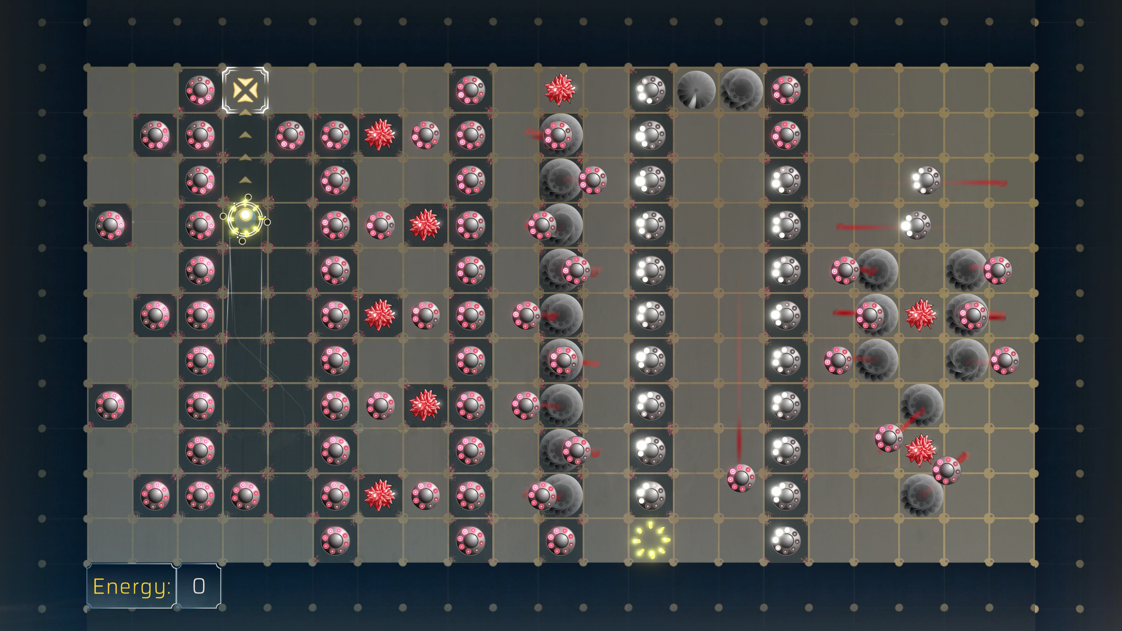 Drehe die quadratischen Felder auf dem Brett, um feindliche Drohnen zu zerstören, bevor sie dich kriegen.