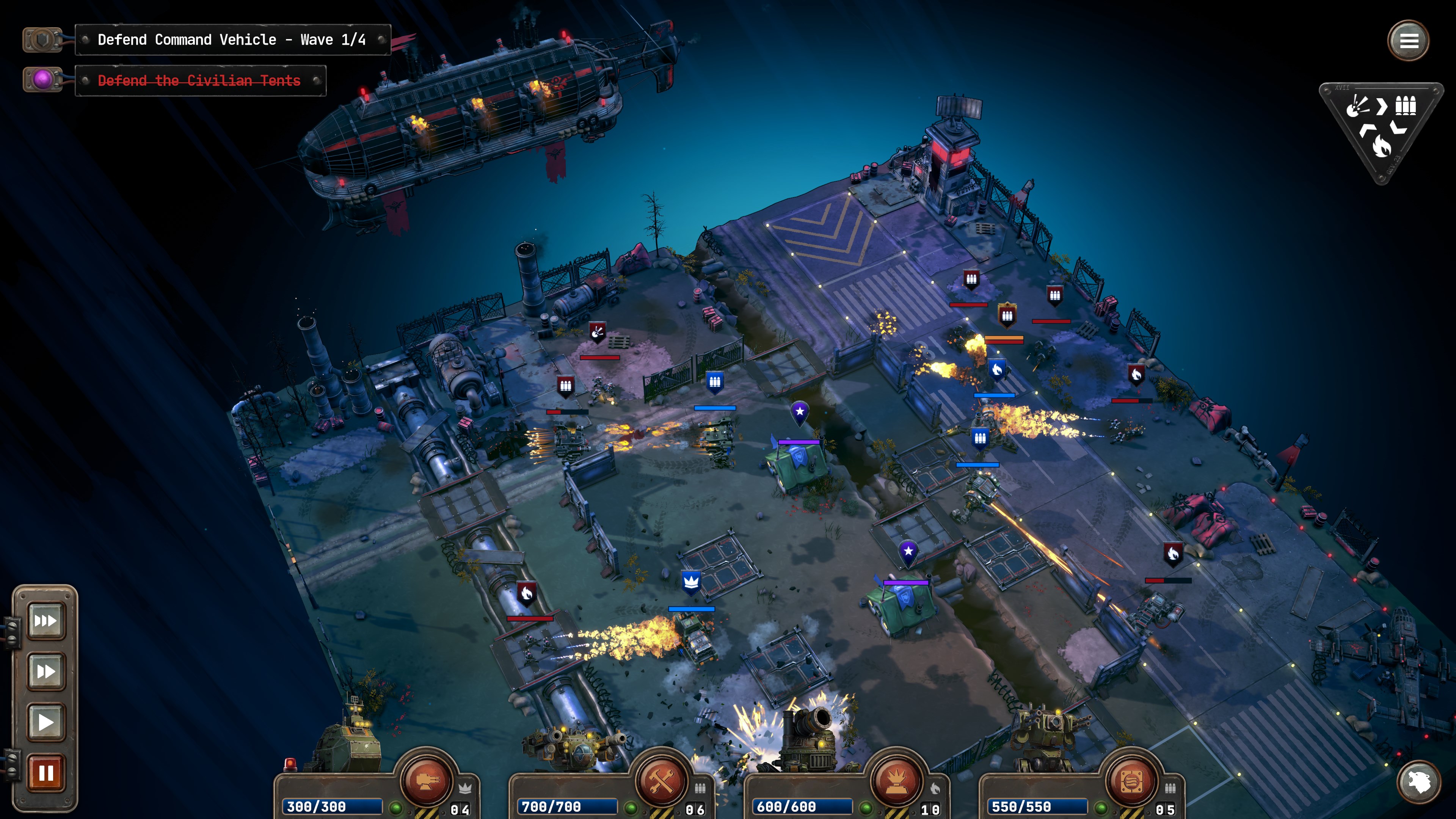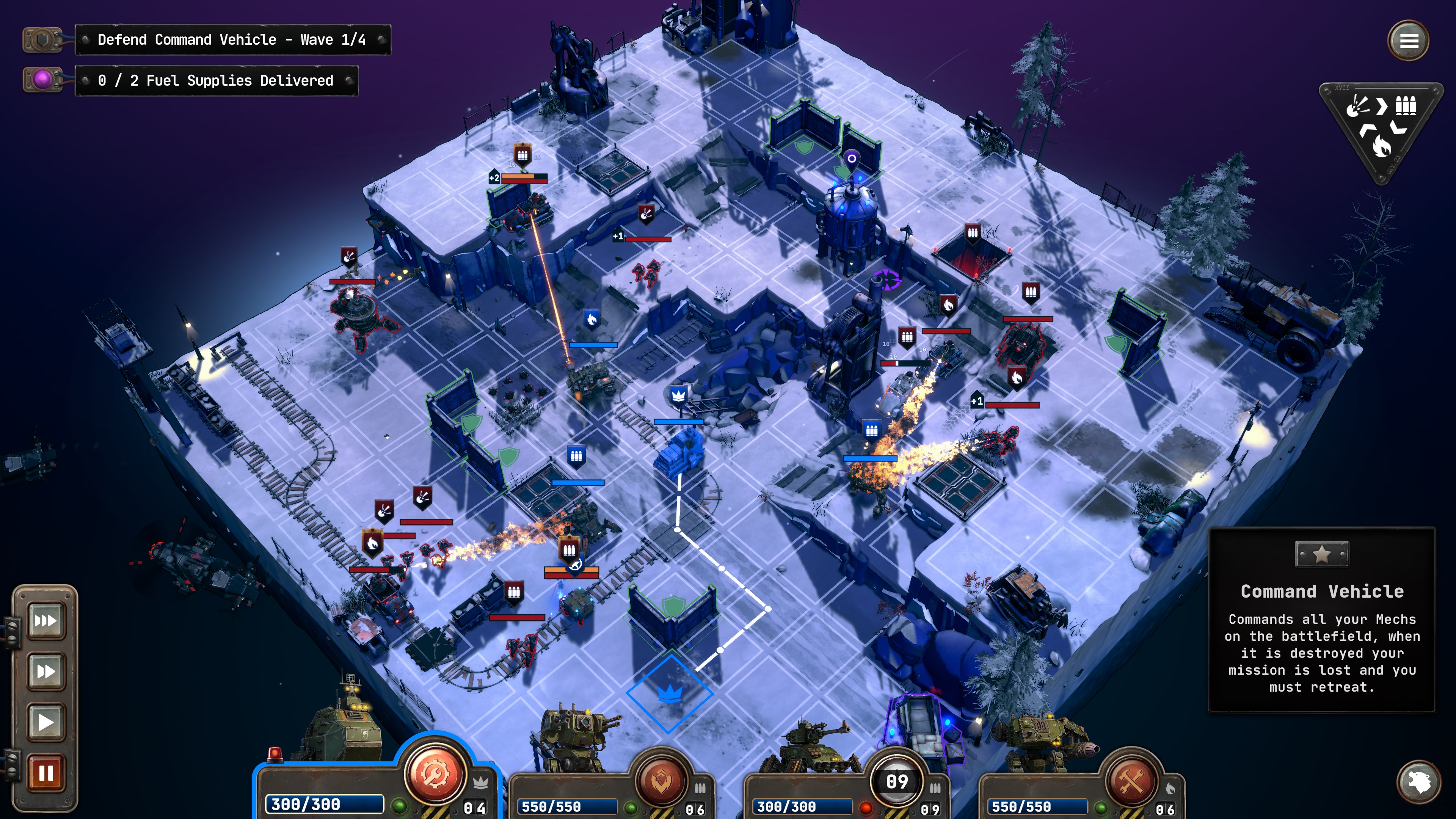 Setze deine Mech-Schwadron ein und befehlige sie in Echtzeit, um Wellen von Feinden abzuwehren. Mit einzigartigen Kombinationen von Feinden und Terrain bietet jedes neue Schlachtfeld eine neue Herausforderung. Überlege schnell, um höher gelegenes Gelände und Deckung zu nutzen, von feindlichen Schwächen zu profitieren und taktische Vorteile auszuspielen, um dem Ansturm standzuhalten und das Kommandofahrzeug zu beschützen.