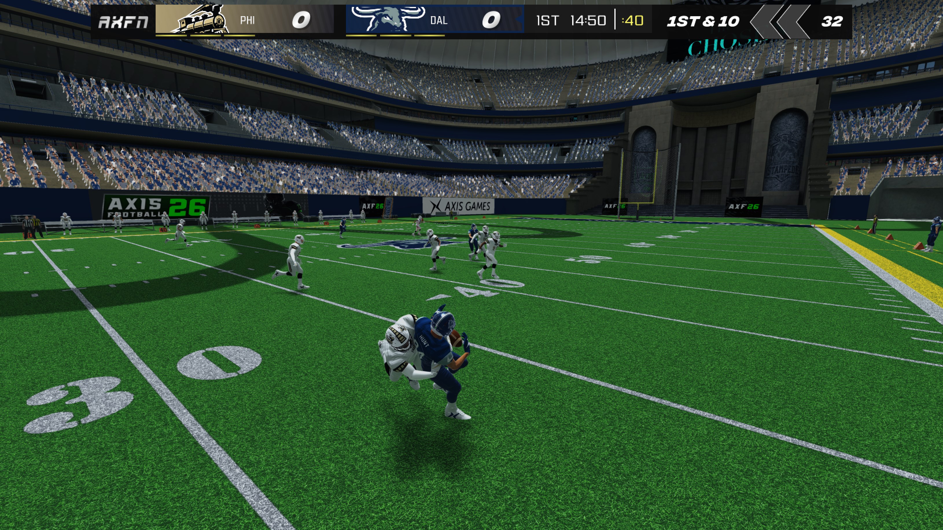 Axis Football 2026 ist eine umfassende American-Football-Simulation mit flüssigem Gameplay, unbegrenzten Anpassungsmöglichkeiten und dem besten Franchise-Modus der Branche.