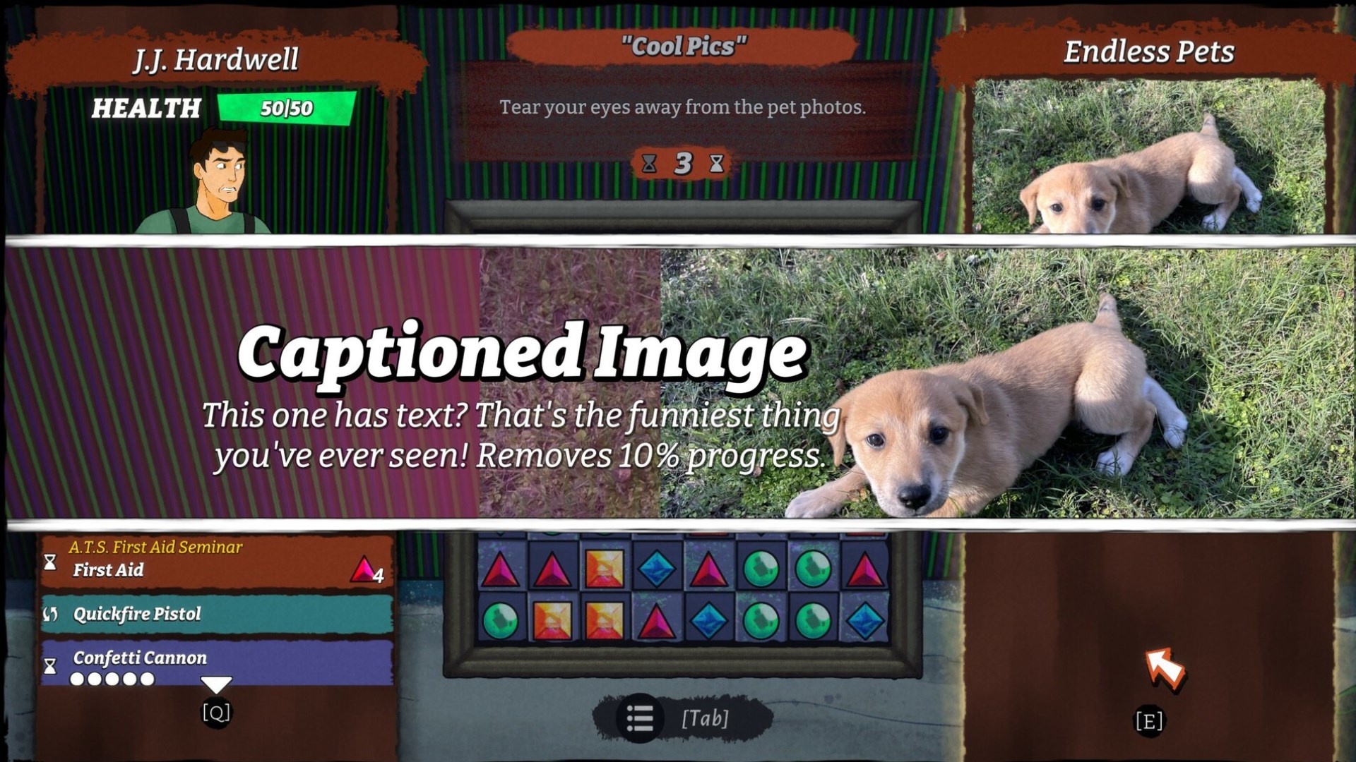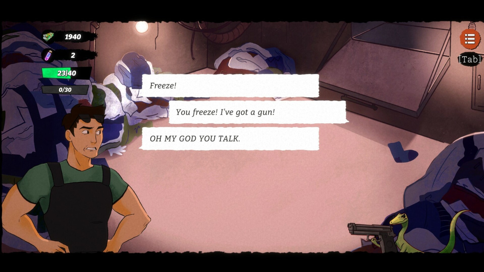 Creepy Redneck Dinosaur Mansion 3 geht aufs Ganze. So sehr, dass es wehtut. Es handelt sich um die Fortsetzung zu einer Spielereihe, die nicht existiert, komplett mit Hintergrundgeschichte und einem fiktionalen Entwicklungsteam. Es ist ein Spiel, bei dem "Kombiniere 3" nicht nur für den Kampf genutzt wird, sondern auch zum Schlösserknacken, für Diskussionen mit Robotern und dafür, einen Haufen Diamanten vor den Augen eines notorischen Juwelendiebs zu verschlingen, damit er sie nicht zuerst stehlen kann. Es ist, alle Genre-Elemente berücksichtigt, ein Kombiniere-3-Survival-Horror-Comedy-RPG-Metroidvania, und es ist absolut abgefahren.