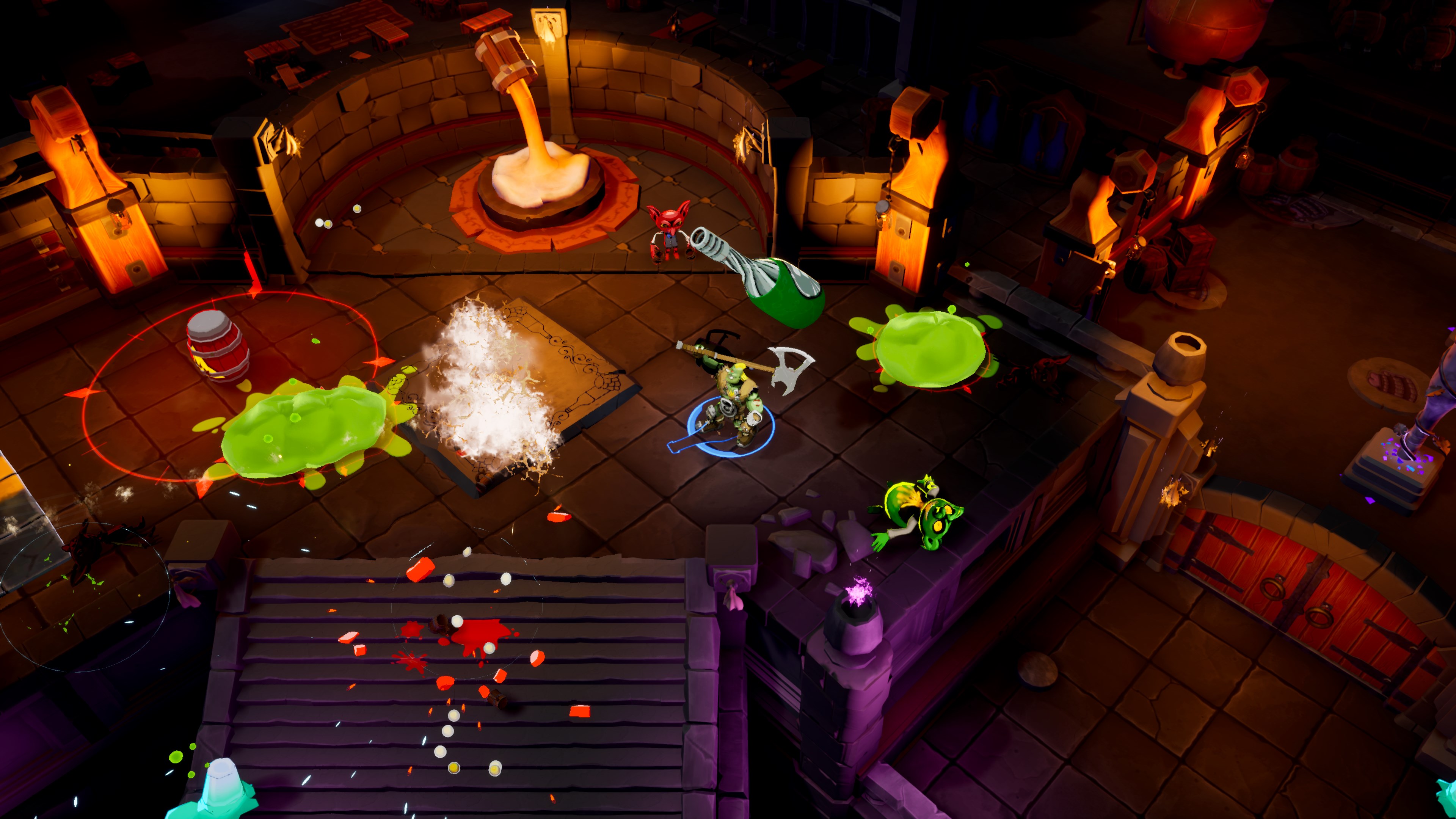 STEIGE HINAB: Wähle einen berauschten Helden und reise tief unter die Taverne, allein oder gemeinsam im Couch-Koop für 2 bis 4 Spieler. Auf der Suche nach dem gestohlenen Braustein durchquerst du die Labyrinthe verdorbener Keller, trostloser Destillerien und anderer seltsamer Tavernenumgebungen. Chaotische Kampfräume, tückische Fallen und mächtige Gebräue erwarten dich. Bei jedem Durchspielen gibt es neue Gegner, Gegenstände und Geschäfte, mit denen du deine Kräfte messen kannst!