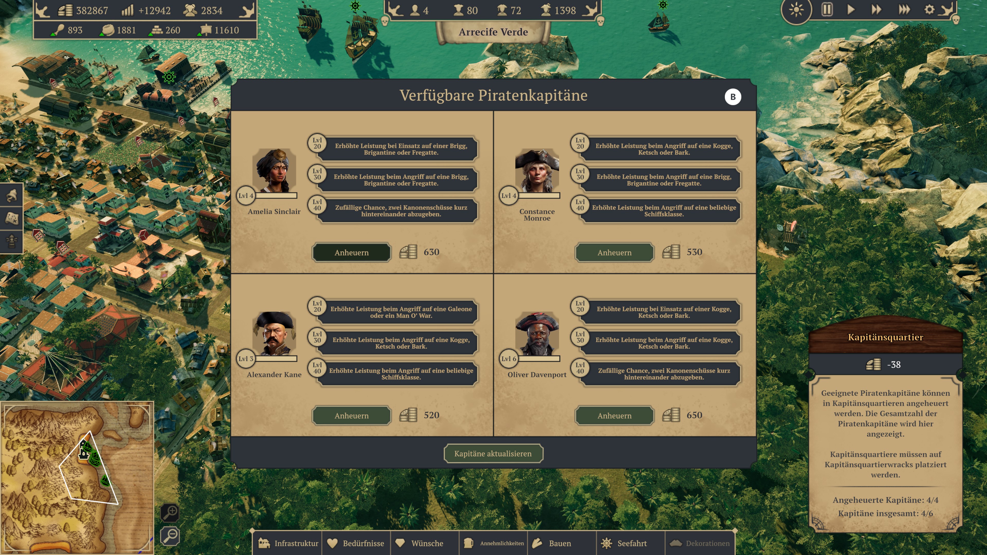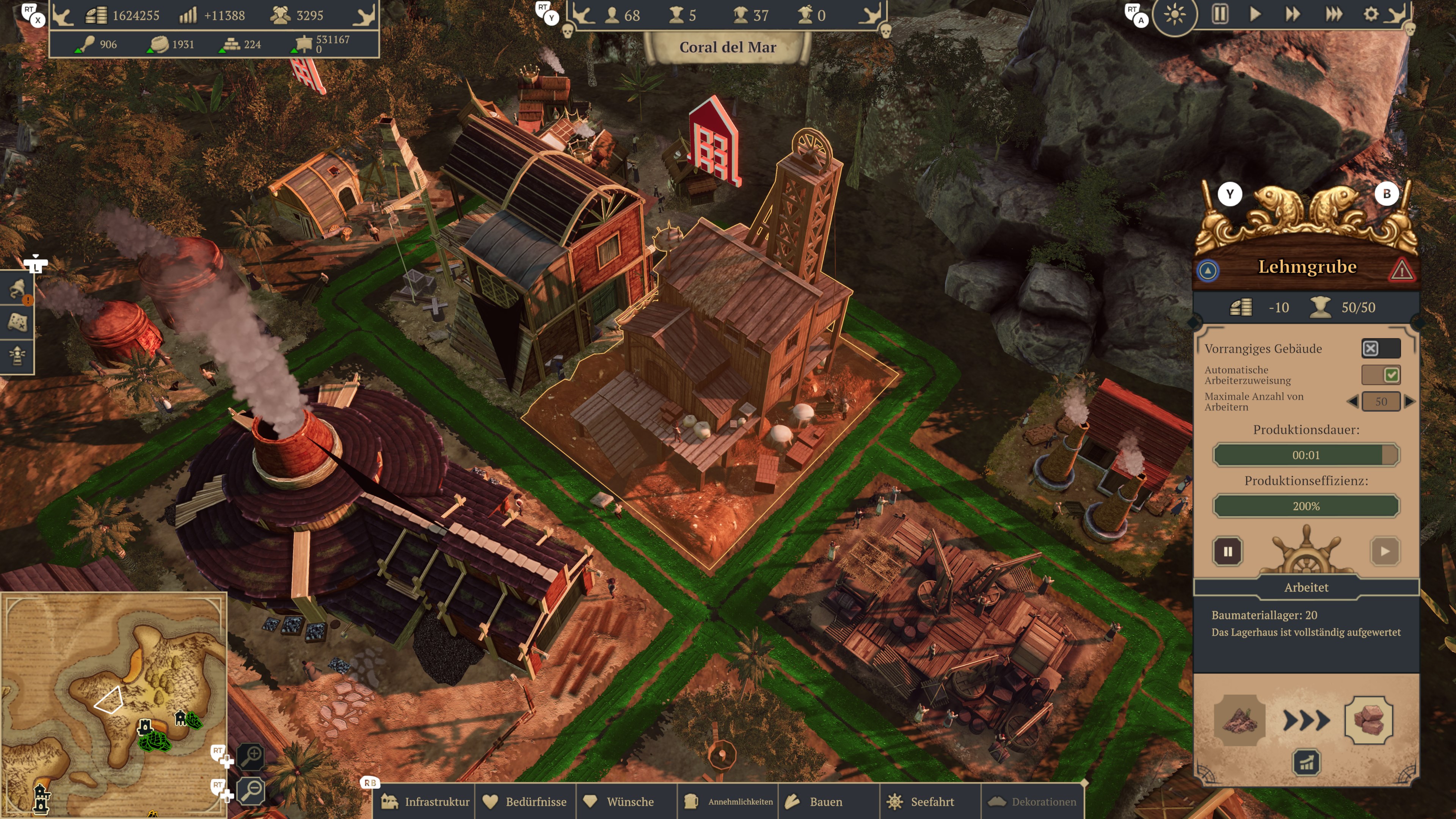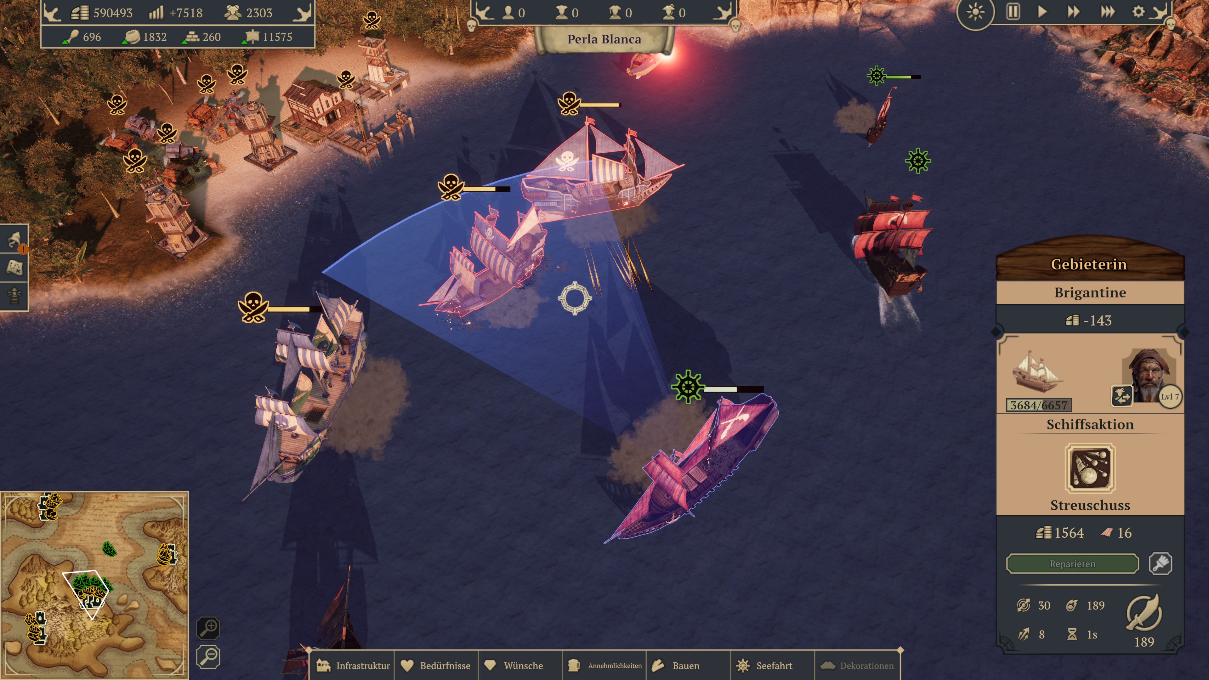 Gründe in diesem verwegenen Städtebau-Spiel mit Echtzeit-Seeschlachten eine neue Piratenutopie und lasse den Verrätern, die dir Unrecht getan haben, Gerechtigkeit widerfahren! Baue einen bescheidenen Außenposten zu einer ausgedehnten Siedlung aus, indem du in Produktionsstätten und Annehmlichkeiten investierst. Verteile wertvolle Güter über ein Netzwerk von Docks, Depots und Lagerhäusern, um die Bedürfnisse deiner Einwohner zu befriedigen und ihr Ansehen in der Piratengesellschaft zu steigern. Heuere heldenhafte Kapitäne an, kommandiere eine mächtige Flotte und stich als Eroberer in See. Befreie Inseln, besiege rivalisierende Fraktionen und unterhalte vielschichtige diplomatische Beziehungen zu den einflussreichsten nationalen Handelskompanien der damaligen Zeit.
