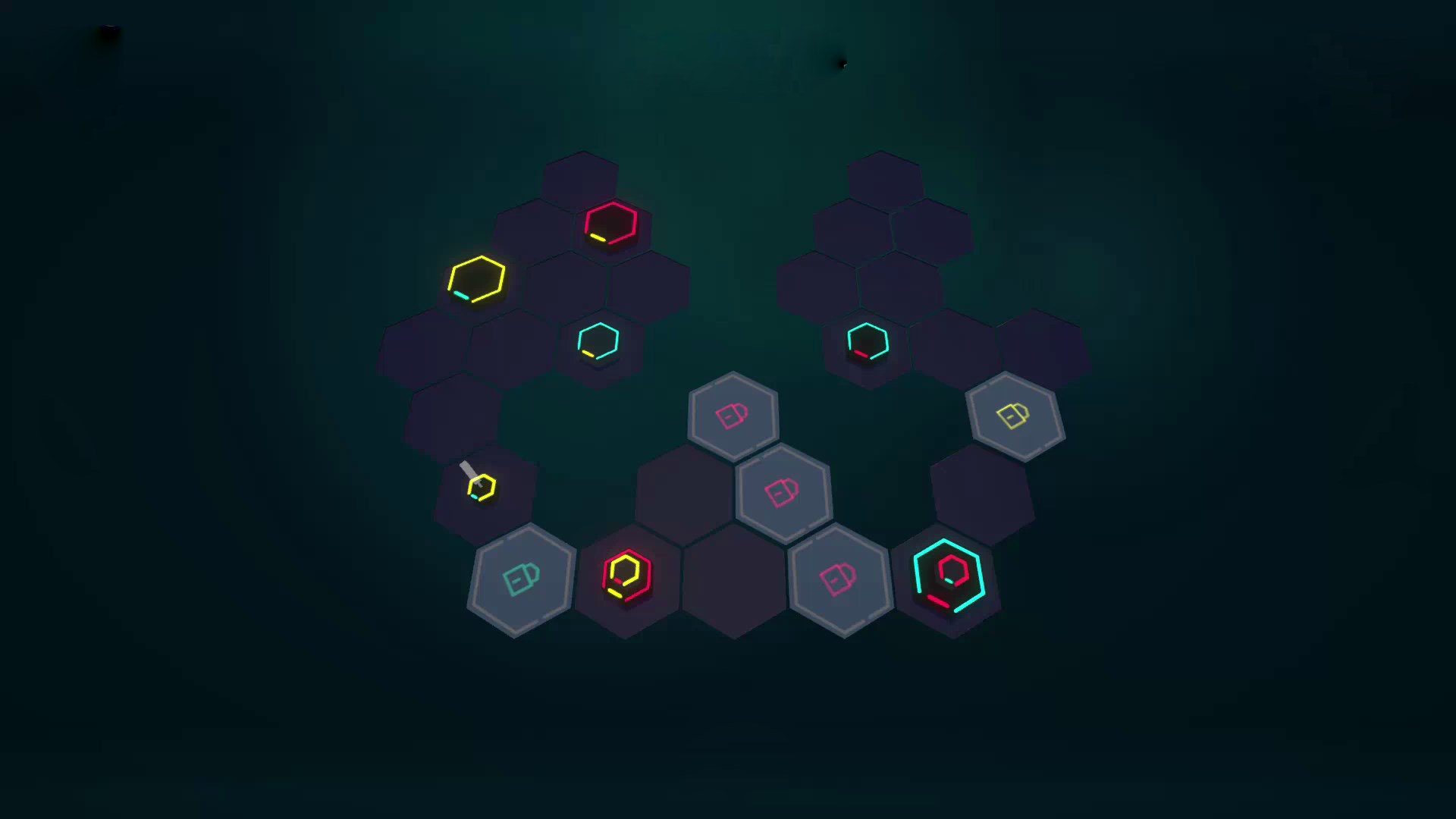 Entsperre blockierte sechseckige Felder, indem du einen Turm derselben Farbe baust, um neue Wege zu eröffnen und die Lösung des Levels voranzutreiben.