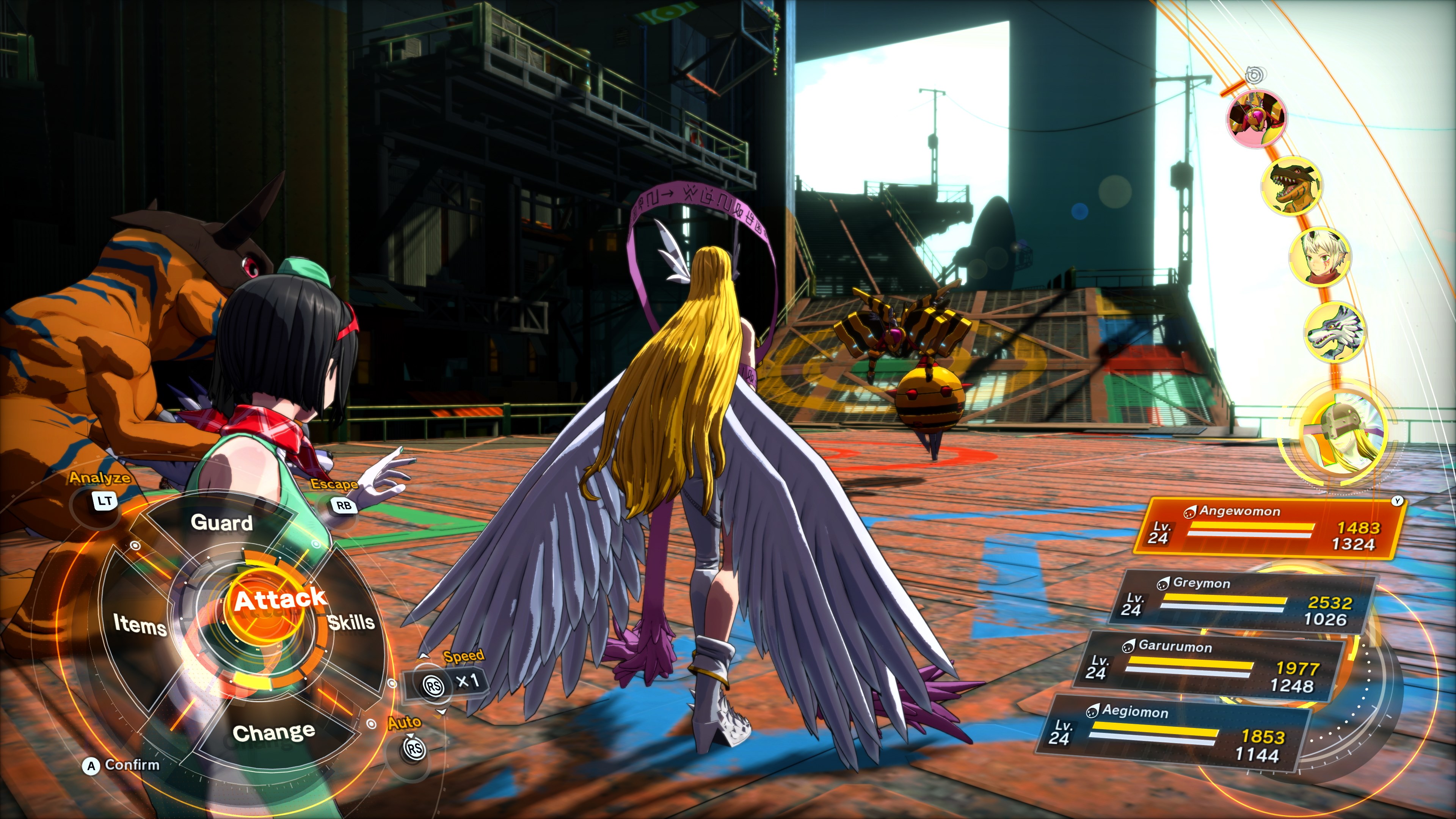 Begib dich auf ein Abenteuer, das sich über die menschliche und die digitale Welt erstreckt, um eine Vielzahl von Digimon zu sammeln und für rundenbasierte Kämpfe heranzuziehen.