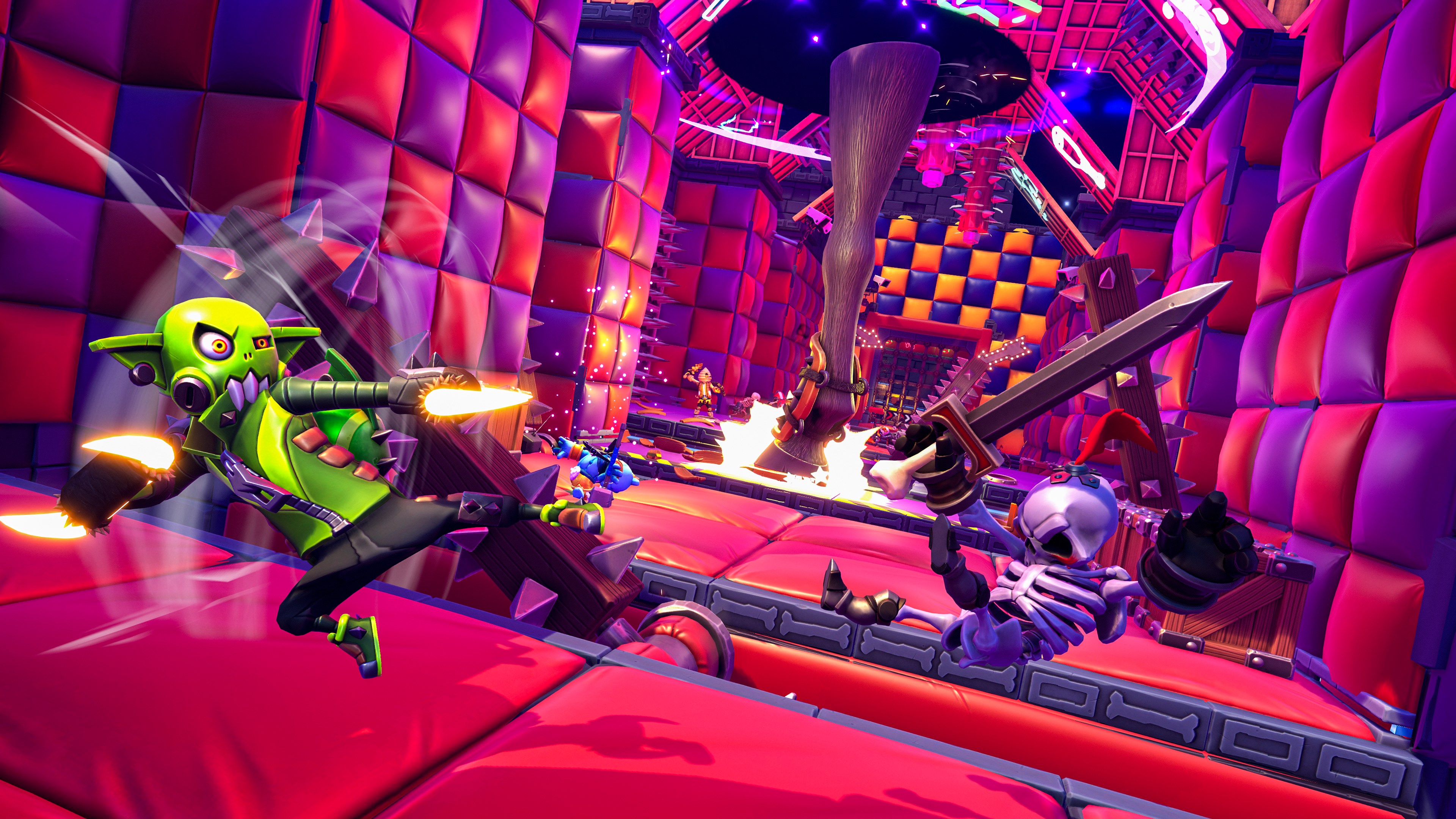 Tritt bei einem Koop-Plattformspektakel an, bei dem sich bis zu vier Spieler den hinterhältigsten, offiziellen und von der Community erstellten Dungeons voller Rätsel, Herausforderungen und verrückten Monstern stellen. Kämpfe dich durch chaotische Dungeons, um auf deinem Weg zum ultimativen Kämpfer neue Fähigkeiten und Ausrüstung freizuschalten!