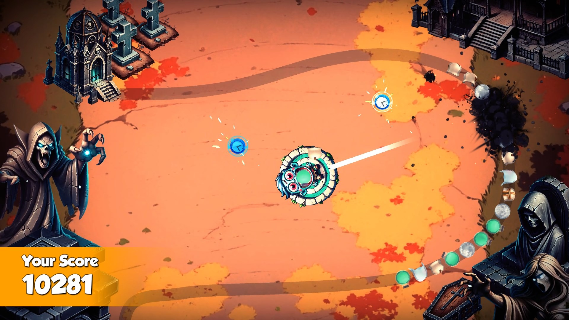 Erkunde alle zehn Level vier Zombie-Welten: unheimliche Friedhofsgärten, verwunschene Herrenhäuser, schattige Kryptahöhlen und gruselige Katakombenkammern – jede mit einzigartigen Pfaden, neuen Murmelfarben, kniffligen Hindernissen und schnelleren Wellen.